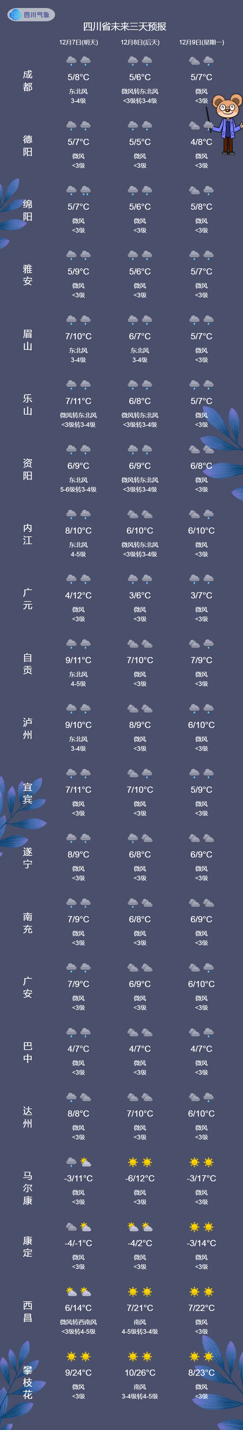 气象万千,小观看天!小伙伴们,早上好!今天是12月7日,星期六。这个周末,盆地多阴雨,大家要注意保暖。