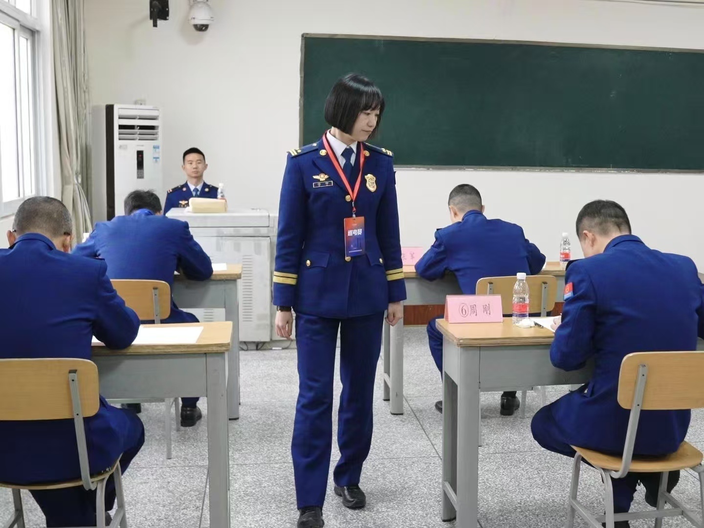 蒲珂(中)在四川省2024年度消防监督业务比武中监考。