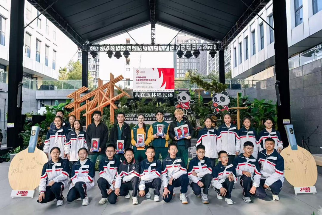 12月1日至4日以及12月6日,在2024年成都国际乒联混合团体世界杯举办期间,5场“球场和校园·来自世界杯的青春对话”在民谣里举行,参加本次混团世界杯的澳大利亚队、埃及队、美国队、法国队和韩国队先后走进活动现场,与来自成都大中小学的学子们深入交流互动。
