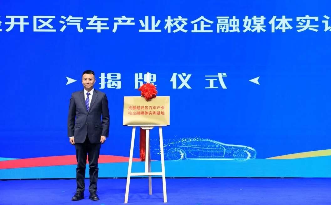 活动现场,成都深业车城、四川财经职业学院签约设立的“成都经开区汽车产业校企融媒体实训基地”正式揭牌。由四川财经职业学院师生组成的融媒体团队将在该基地不定时直播龙泉驿生产的汽车的展销活动,宣传推广龙泉驿区汽车产业、龙泉驿汽车品牌及成都深业车城,形成人才培养与引流双赢态势。