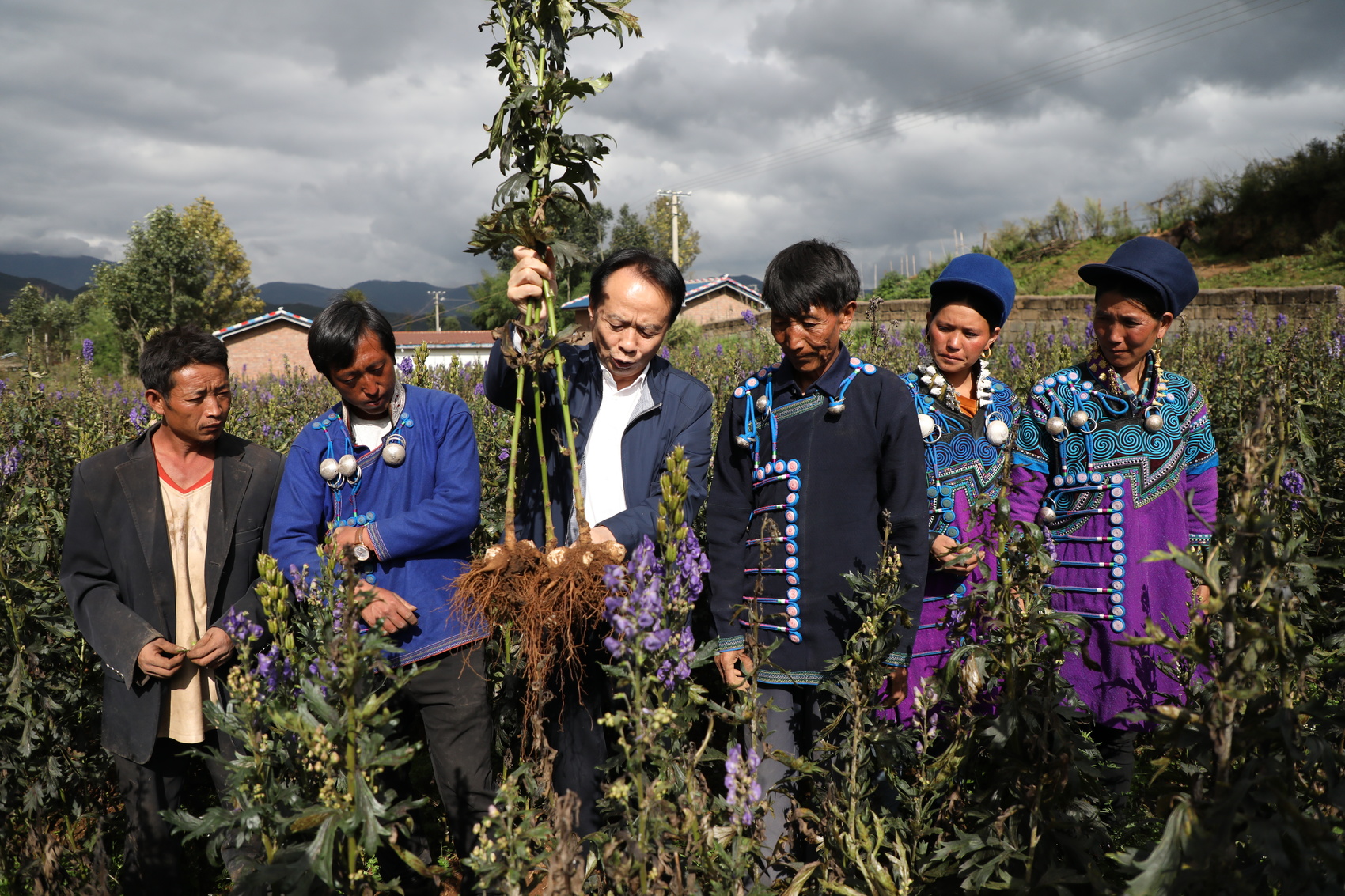 2019年,省光彩会副会长企业好医生药业集团帮扶布拖县乐安乡火灯村170户彝族农户种植附子。