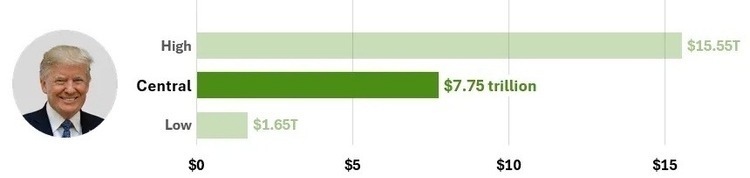 有预算分析师给出了更精确的数字:特朗普包含关税政策在内的一系列经济计划将导致美国联邦政府债务到2035年再增加7.75万亿美元。