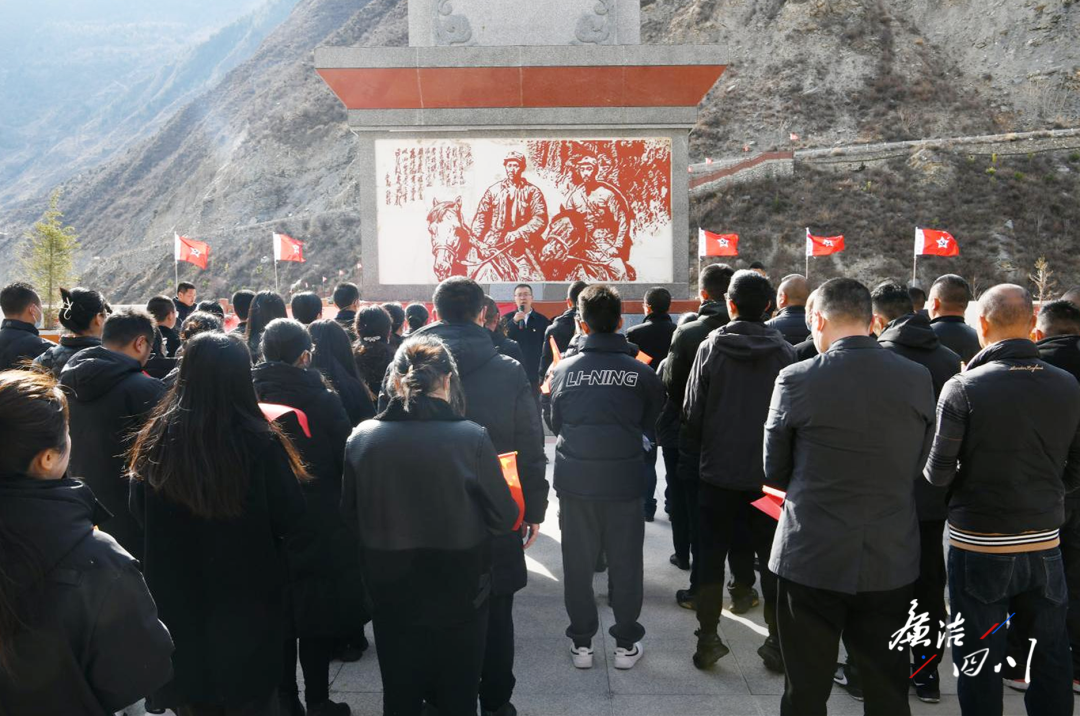 “红军长征翻越夹金山途中,只见一位冻僵的老战士,倚靠着一棵光秃秃的树干一动不动的坐着,单薄破旧的衣服贴在身上,他的御寒衣物呢?为什么没有发下来?警卫员,叫军需处长跑过来!终于,人群中传来了微弱的声音:这就是军需处长……”近日,在阿坝州小金县达维镇会师纪念碑前,夹金山红军小学的“红领巾讲解员”声情并茂地向前来参观学习的党员干部进行讲解。