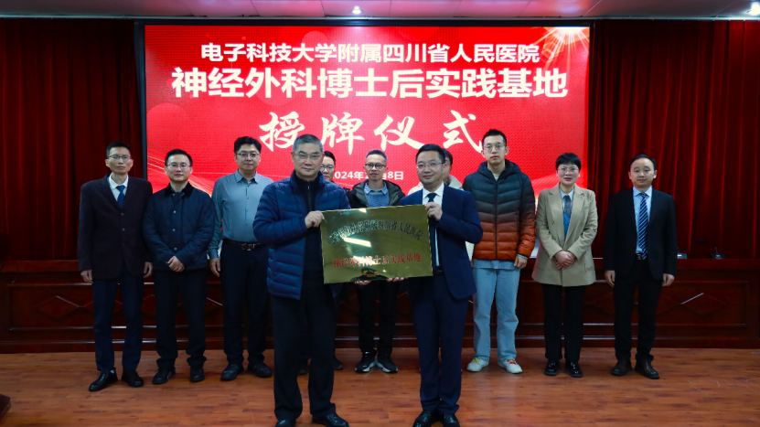 授牌仪式上,周立远从电子科技大学附属医院•四川省人民医院神经外科主任、博士生导师徐如祥教授手中接过授牌,标志着电子科技大学附属四川省人民医院神经外科博士后实践基地落户该院。