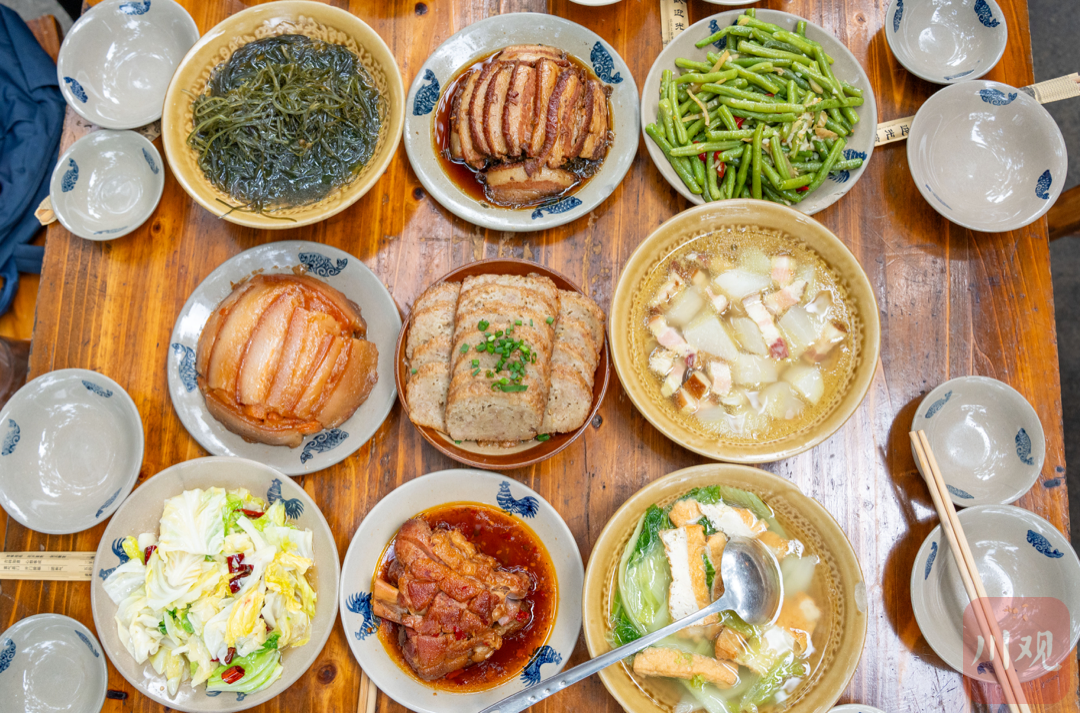 川南请春酒每一台由“九大碗”菜肴组成。 罗顺 摄