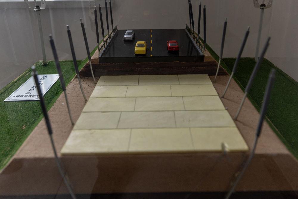 这是在中交第一公路勘察设计研究院有限公司格尔木观测研究基地拍摄的“热棒加XPS板路基”模型(12月3日摄)。新华社记者 姜帆 摄