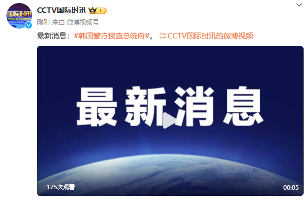 据央视新闻微博消息,韩国警方对总统府展开搜查。