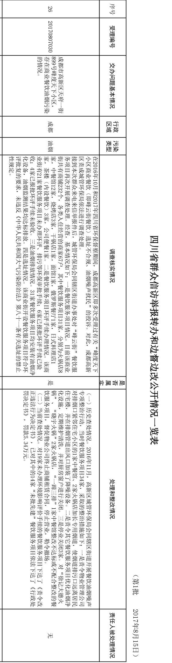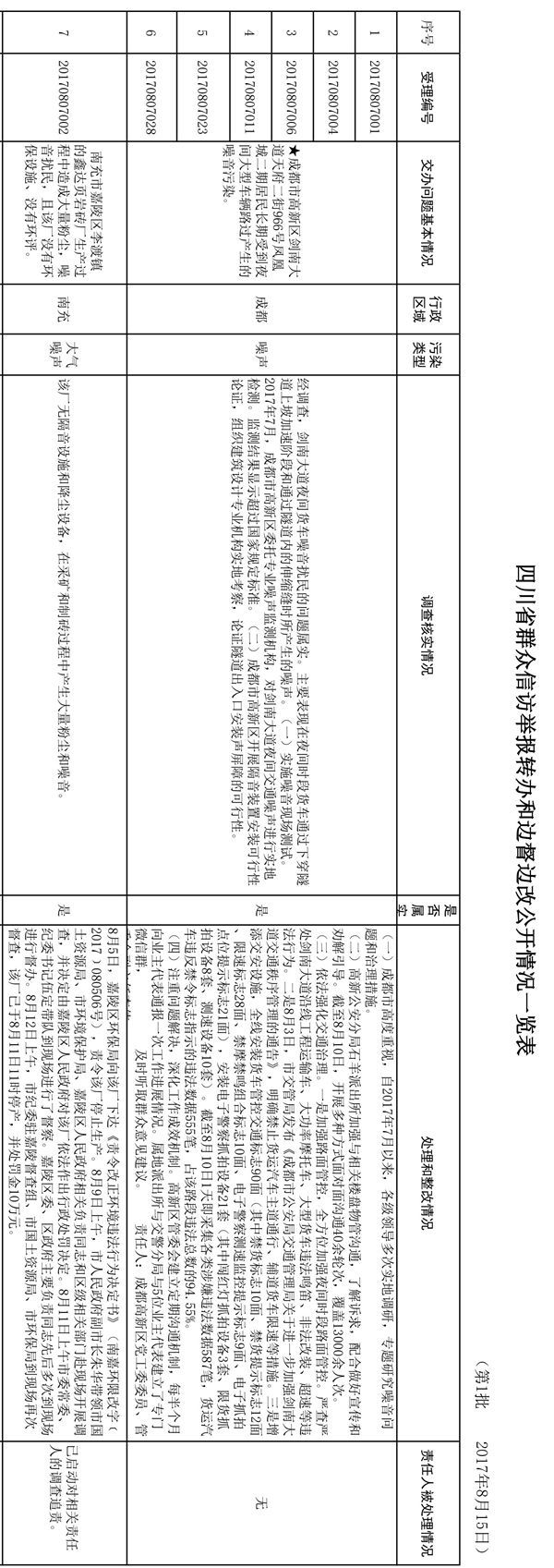 四川省群众信访举报转办和边督边改公开情况一览表,(点击标题查看)