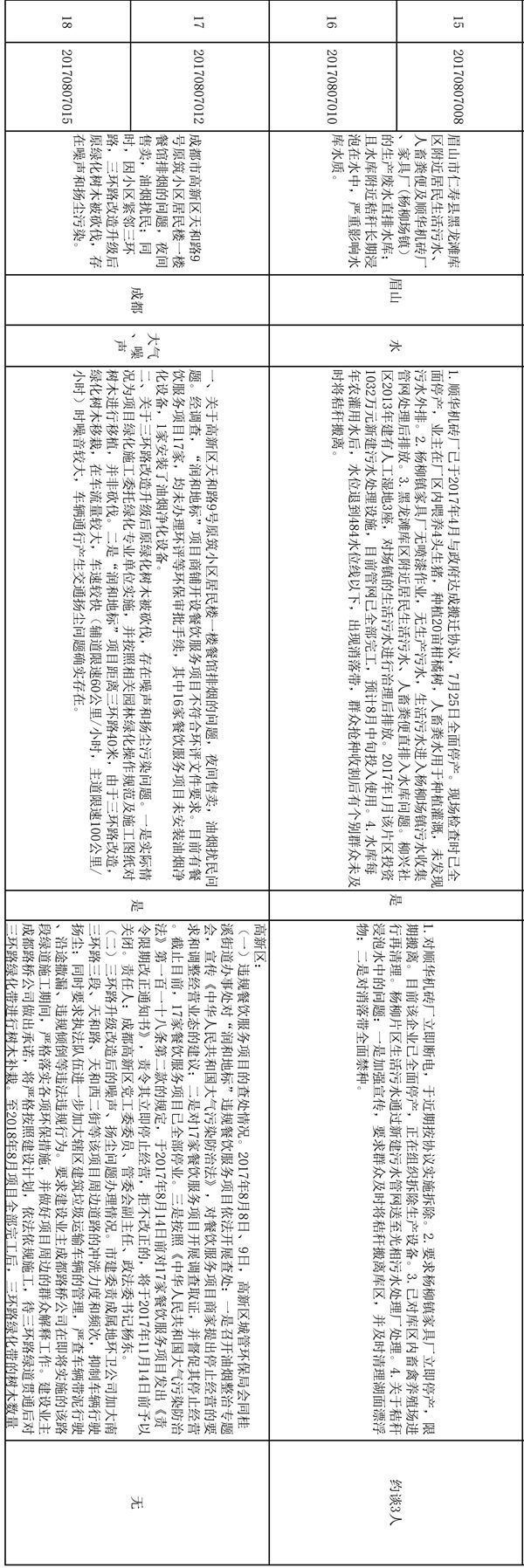 从地域看,在已办结的信访件中,成都23件,眉山3件,南充1件,自贡1件,绵阳1件。