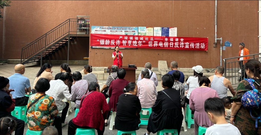 威远县社区学院锦城社区教学点在时代天街小区开展主题为“银龄反诈 智享晚年”的世界电信日反诈宣传