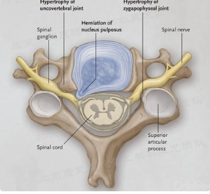 神经根型颈椎病:神经根型颈椎病是以颈肩背部疼痛、上肢疼痛麻木无力为主要表现的常见临床疾病,由于椎间隙高度塌陷,神经根在椎间孔内受增生的钩椎关节及侧块关节前后挤压从而引起症状。
