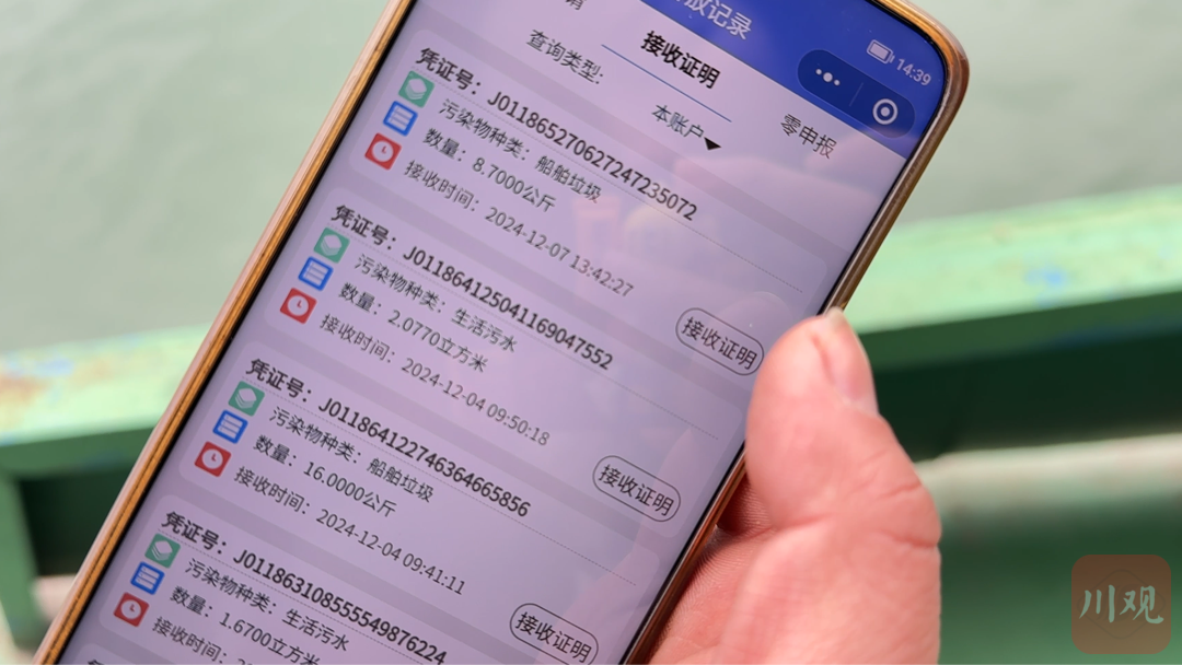 如今,这一困扰不复存在:通过“船E行”App,每艘船交付的污染物在后台都有记录,执法部门能够进行实时监管,泸州探索的船舶垃圾交付“一码通”,实现了人不见面、数据共享。