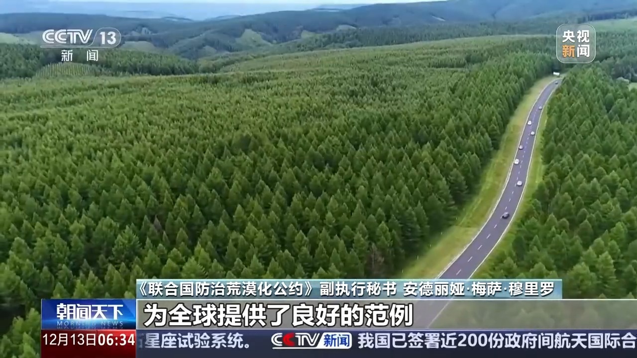 《联合国防治荒漠化公约》副执行秘书 安德丽娅·梅萨·穆里罗:中国已经率先实现了土地退化零增长,53%的可治理沙化土地得到有效治理,中国打造的“绿色长城”为全球提供了良好的范例。