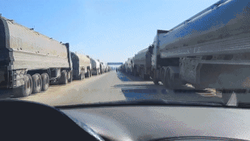 2022年8月,美军派出油罐车组成的车队,将在叙盗采的石油通过非法过境点转运至伊拉克境内的基地。视频截图 新华社