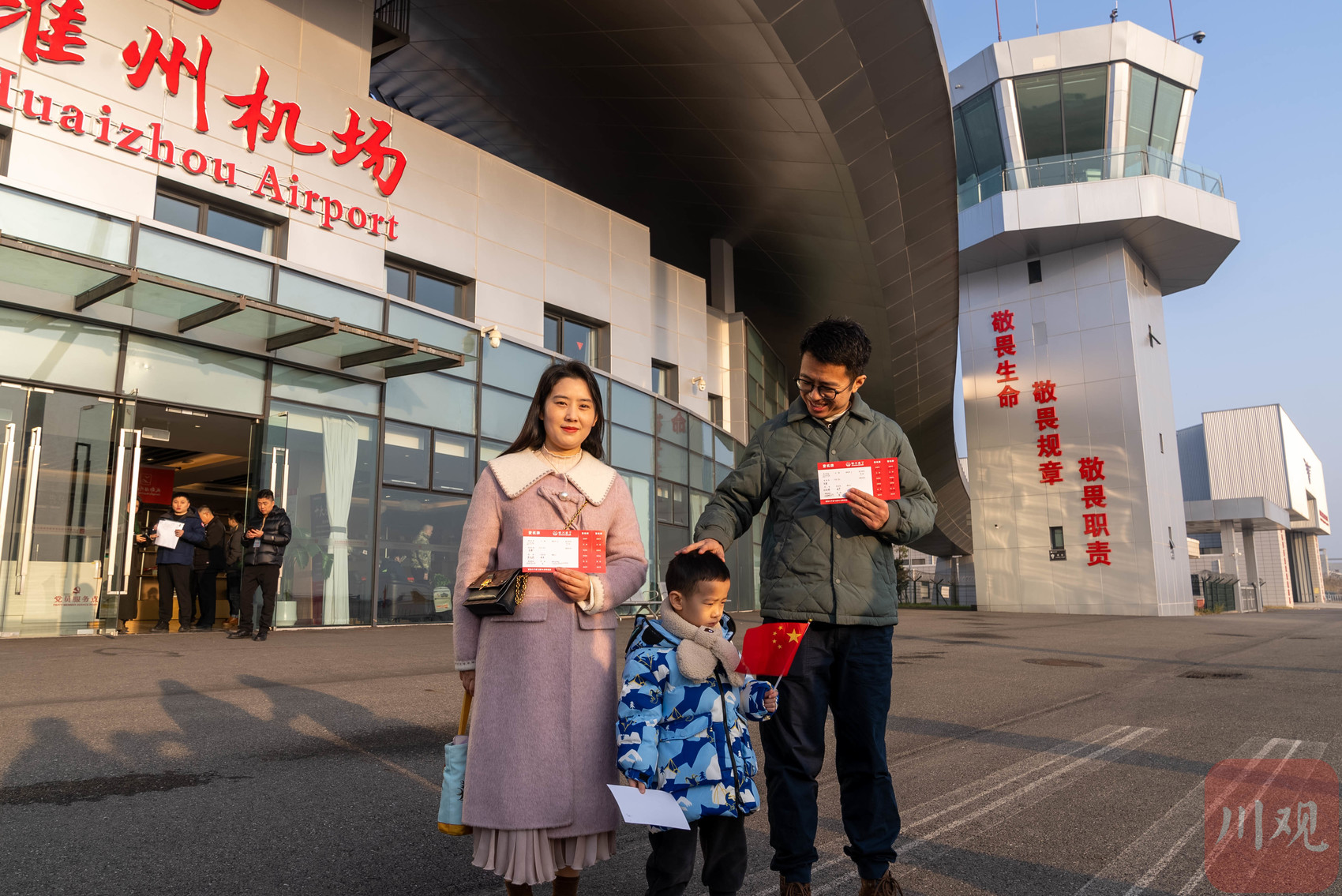 向旭辉一家三口是首趟航班乘客,他们从旅行社了解到这趟航班,决定趁周末来“尝尝鲜”,感受下与高铁、自驾不同的出行体验。