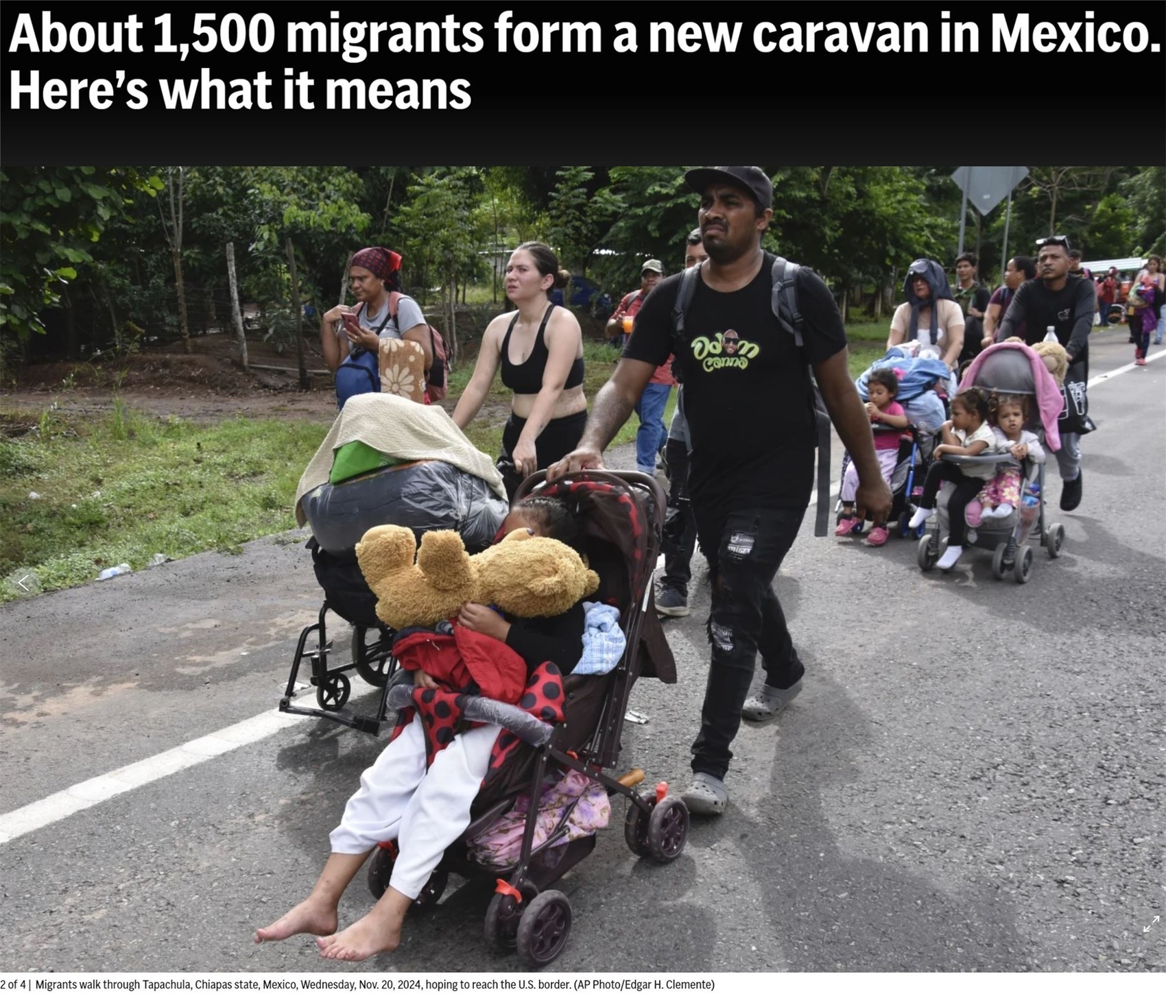 美国移民制度朝令夕改使得非法移民数量在2024年出现激增,中美洲国家赴美非法移民潮规模不断扩大,他们以搭乘顺风车和步行等方式,行进数千公里前往美墨边境,寻求以各种方式入境美国。当地媒体将这种移民方式称为“移民大篷车”。