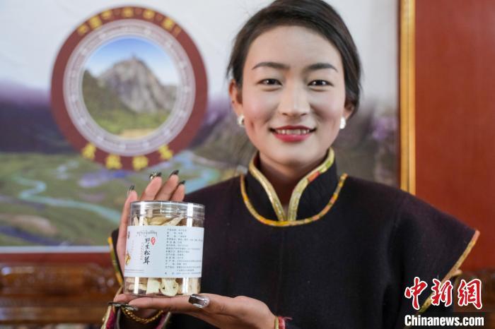 12月12日,西藏林芝工布江达县巴河镇白玛康珠展示当地合作社加工的松茸产品。中新社记者 江飞波 摄