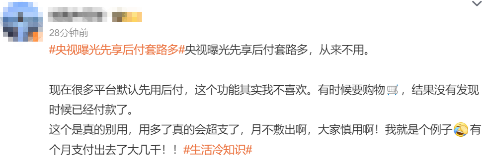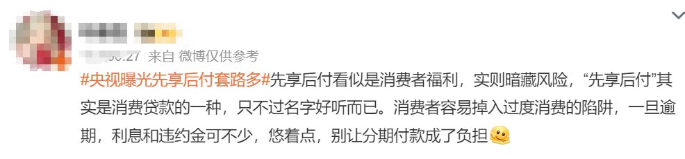 最近,有关“先享后付”话题在网上引发热议。央视最近曝光,这种“让消费者先享受,后付钱”的消费模式,听着好听,实际上却是套路满满。