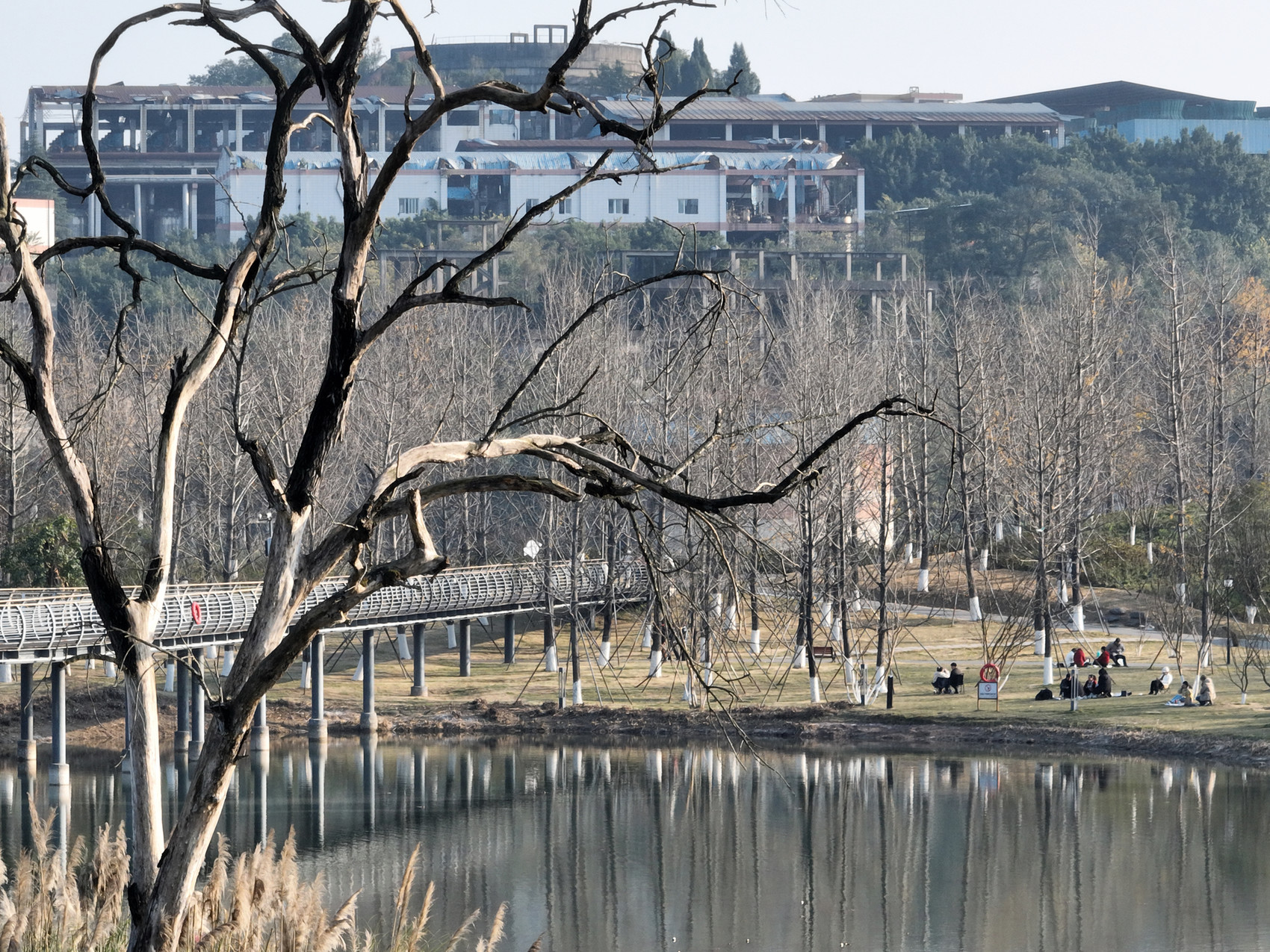 12月16日,内江市市中区天气晴好。内江市市中区大自然湿地公园冬景如画,斑斓的植被与澄澈的水景相映成趣,其韵无穷,铺展为一幅冬日秀美的生态画卷。