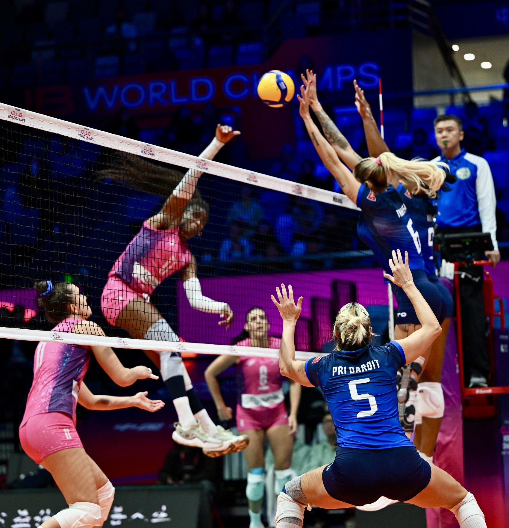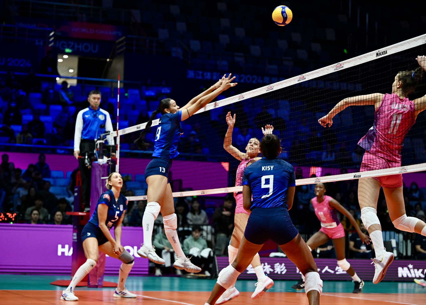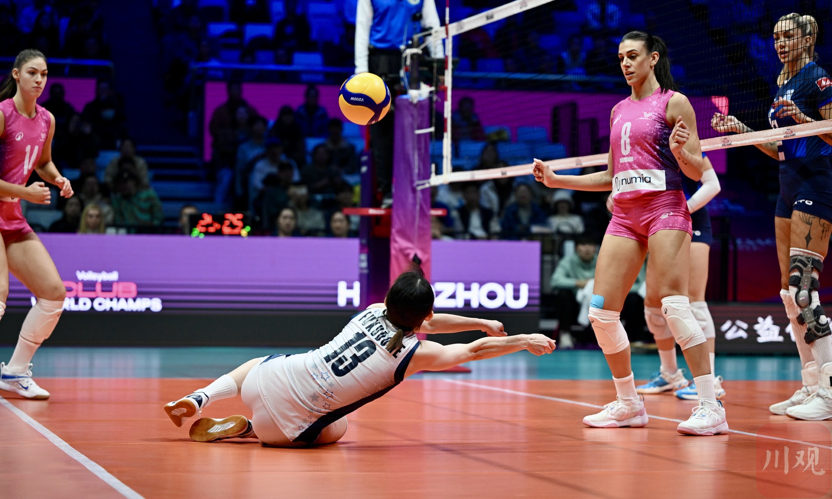2024年12月17日,2024年世界女子排球俱乐部锦标赛(简称:2024女排世俱杯)揭幕战,在浙江省杭州市黄龙体育中心体育馆举行。意大利米兰女排俱乐部(粉色球衣)3-0(25:17,25:22,27:25)战胜巴西米纳斯女排俱乐部(蓝色球衣),赢得了开门红。