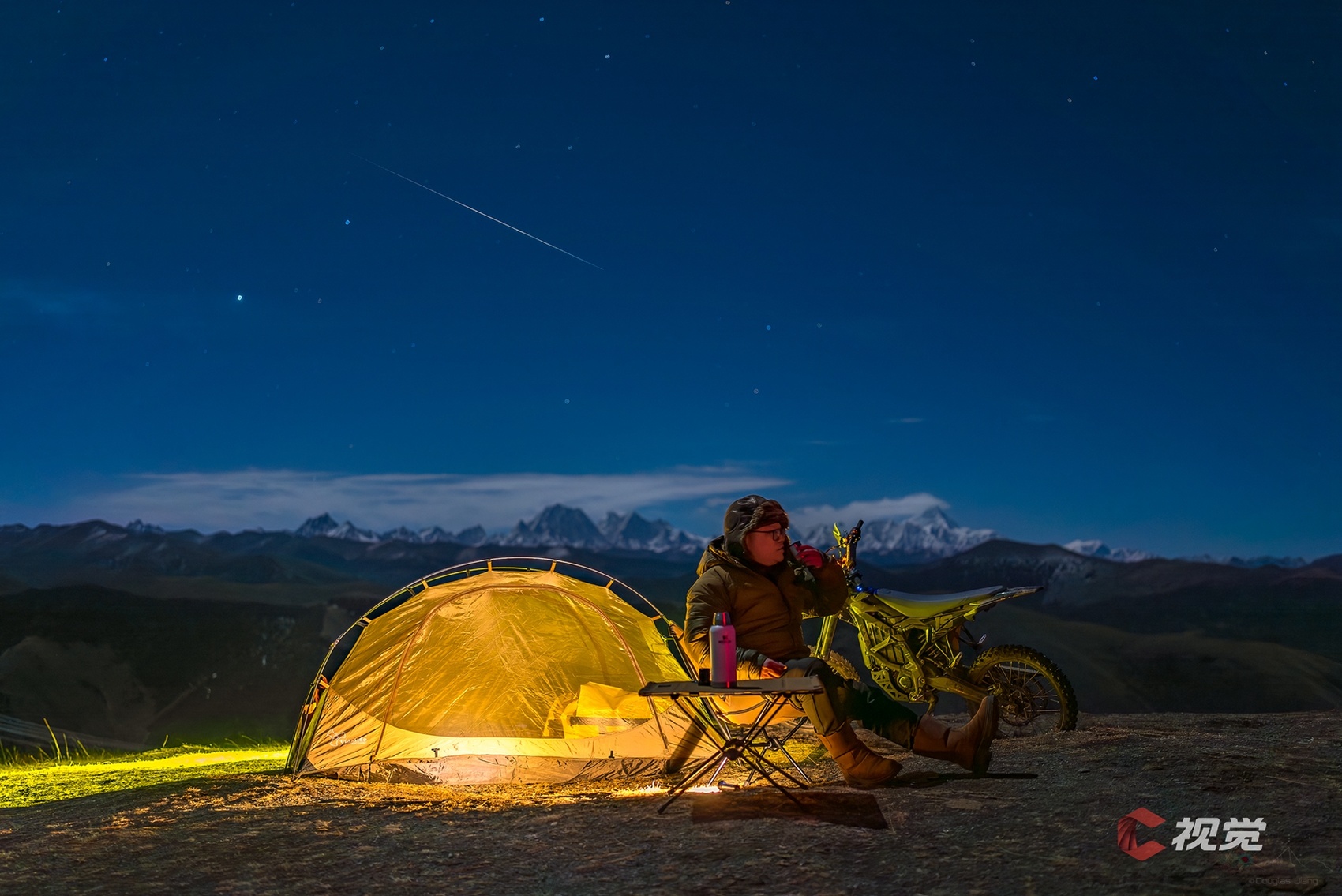 甘孜州甘孜县洛戈梁子,流星与卡洼洛日雪山同框。C视觉摄影师 刘炳科