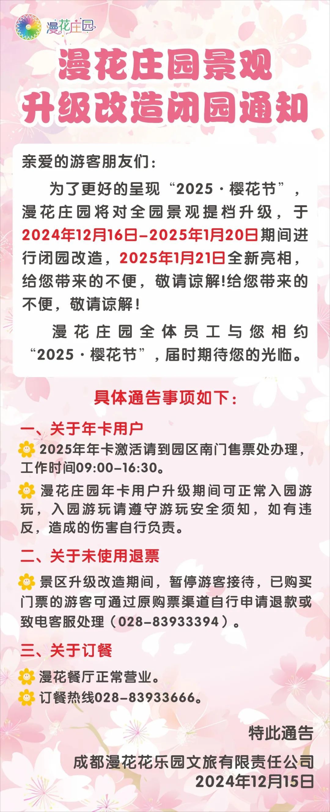 因配合拍摄纪录片,新都区杨升庵祠及桂湖将于2024年12月19日(星期四)临时闭园一天,请有计划出行的游客朋友及时调整出行计划,若给您带来不便,十分抱歉,敬请谅解。感谢广大游客对桂湖景区的支持与厚爱。