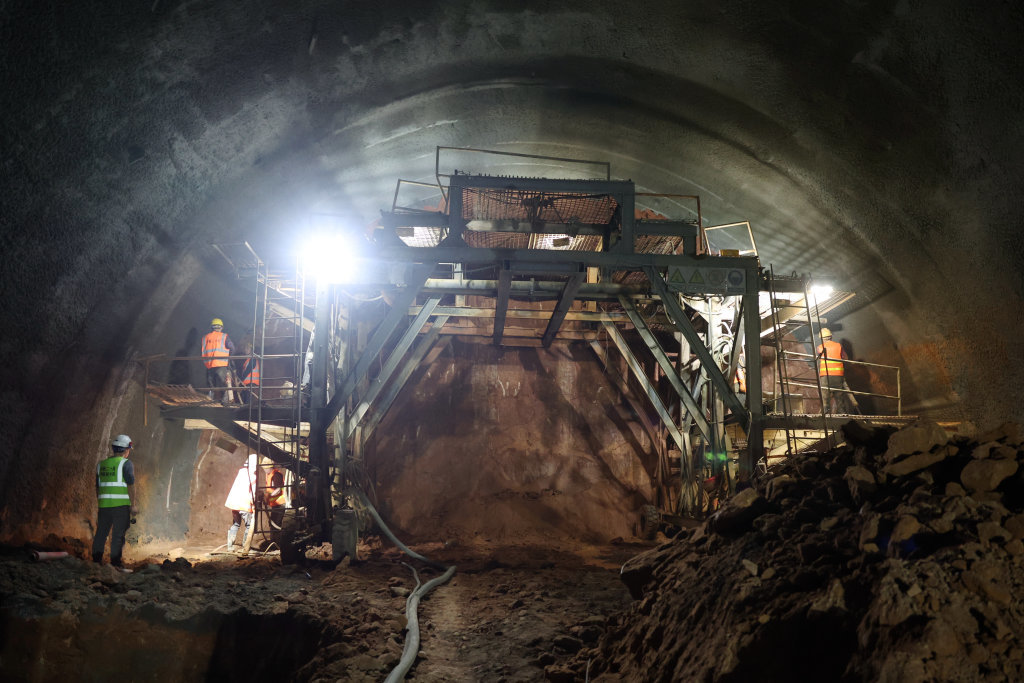 12月17日,施工人员在兰合铁路考勒隧道作业面上施工。