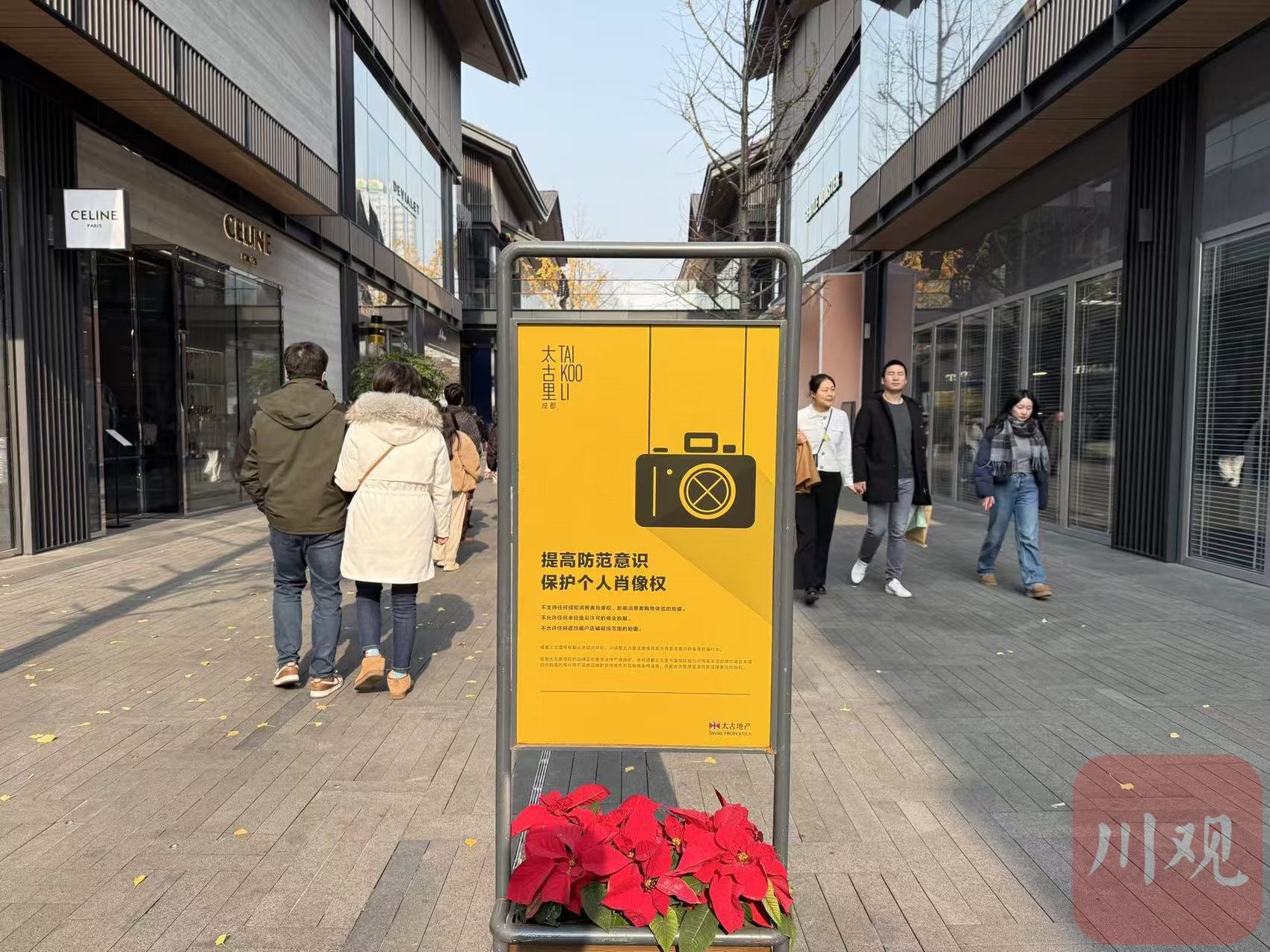 成都人气“出片地”也纷纷采取了积极行动。为规范商拍行为,成都太古里2020年9月开始对公众进行温馨提示:“对于未经顾客许可进行偷拍、跟拍以及影响商场正常运营秩序与顾客体验的不文明拍摄行为进行劝阻,这属于商场日常管理工作的一部分。我们在此也提醒顾客提高防范意识,保护个人肖像权。”