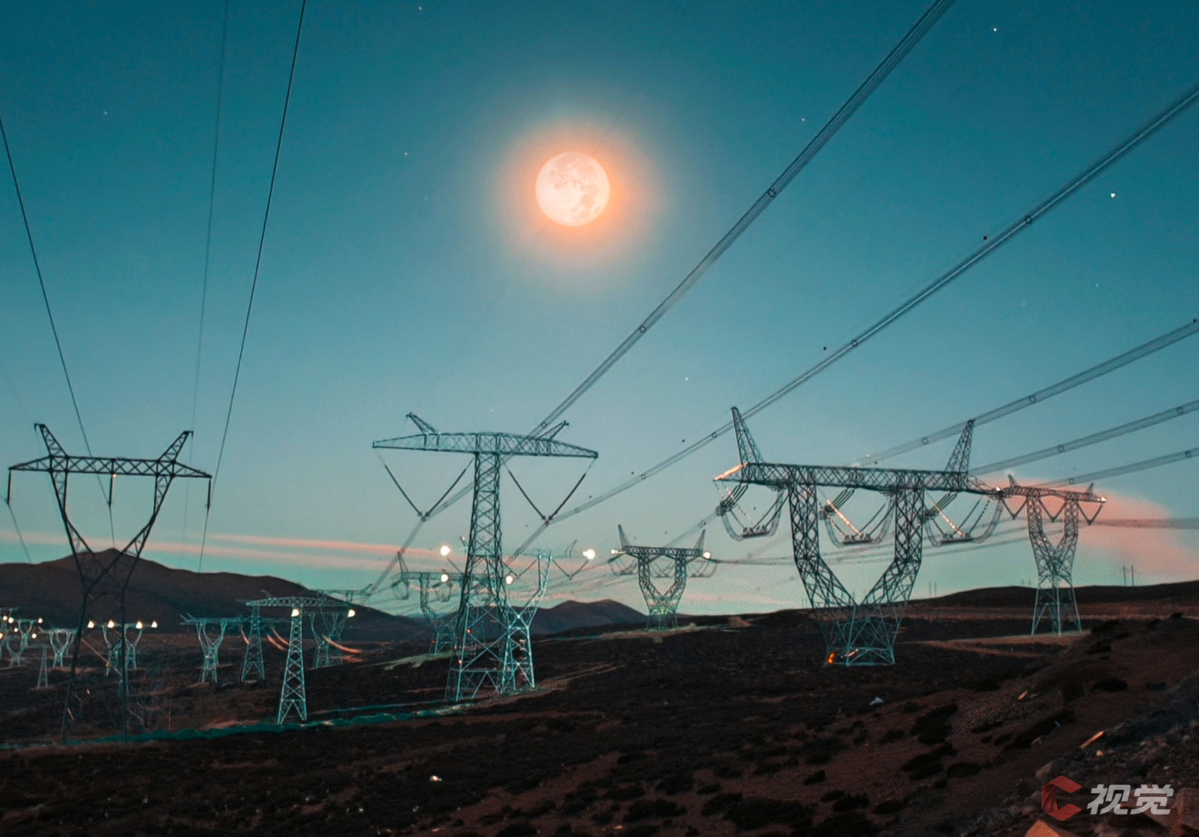 12月16日晚,一轮明月与川渝1000千伏特高压线路同框。