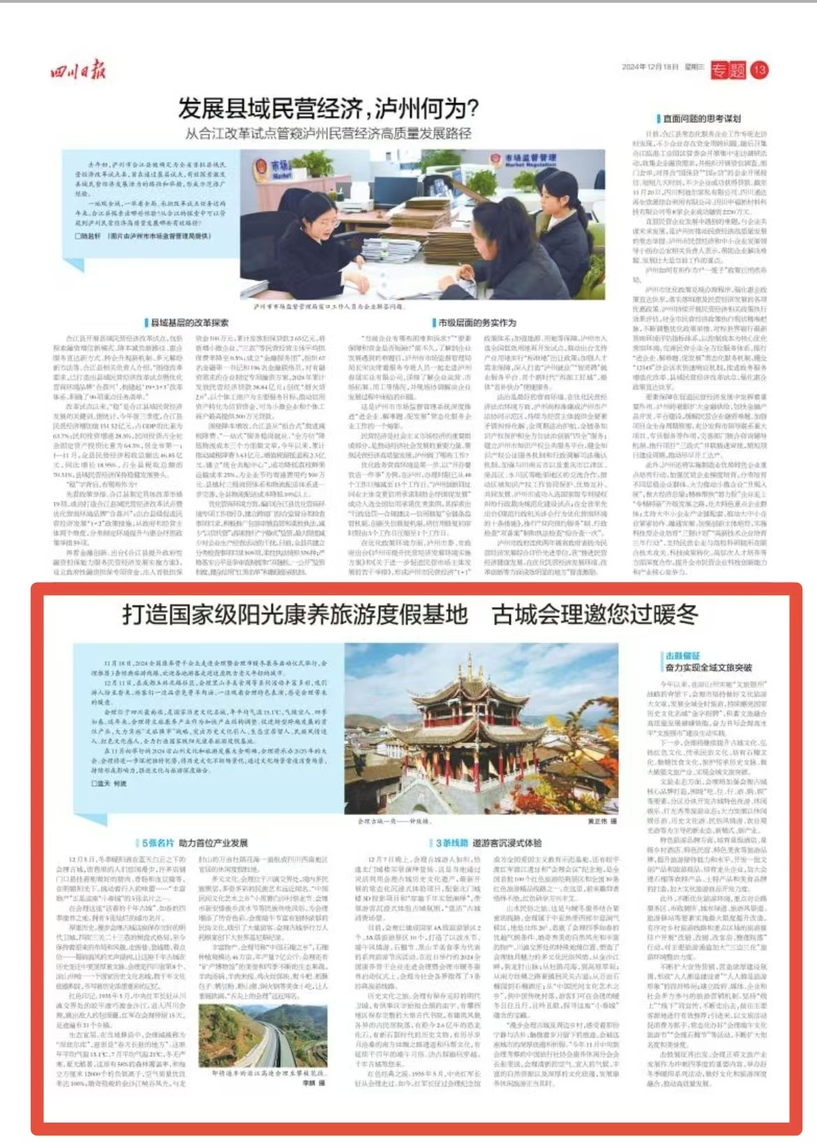 12月18日,四川日报刊发文章《打造国家级阳光康养旅游度假基地 古城会理邀您过暖冬》,聚焦会理推进文化与旅游深度融合发展,全力打造国家级阳光康养旅游度假基地。
