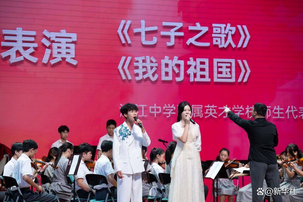 澳门濠江中学附属英才学校师生代表献唱《我的祖国》(2024年10月17日摄)。新华社发(张金加 摄)