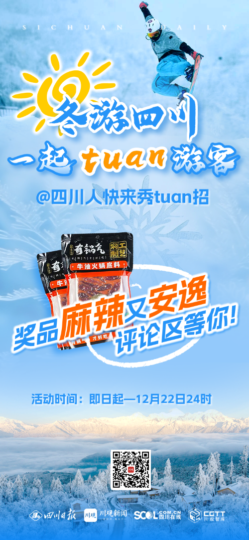游客tuan得好不好,由您的评论点赞数说了算。评论点赞前20的用户(截至12月22日24时),将收到由川观新闻提供的tuan礼:两袋“有锅气”火锅底料(500g/袋)。