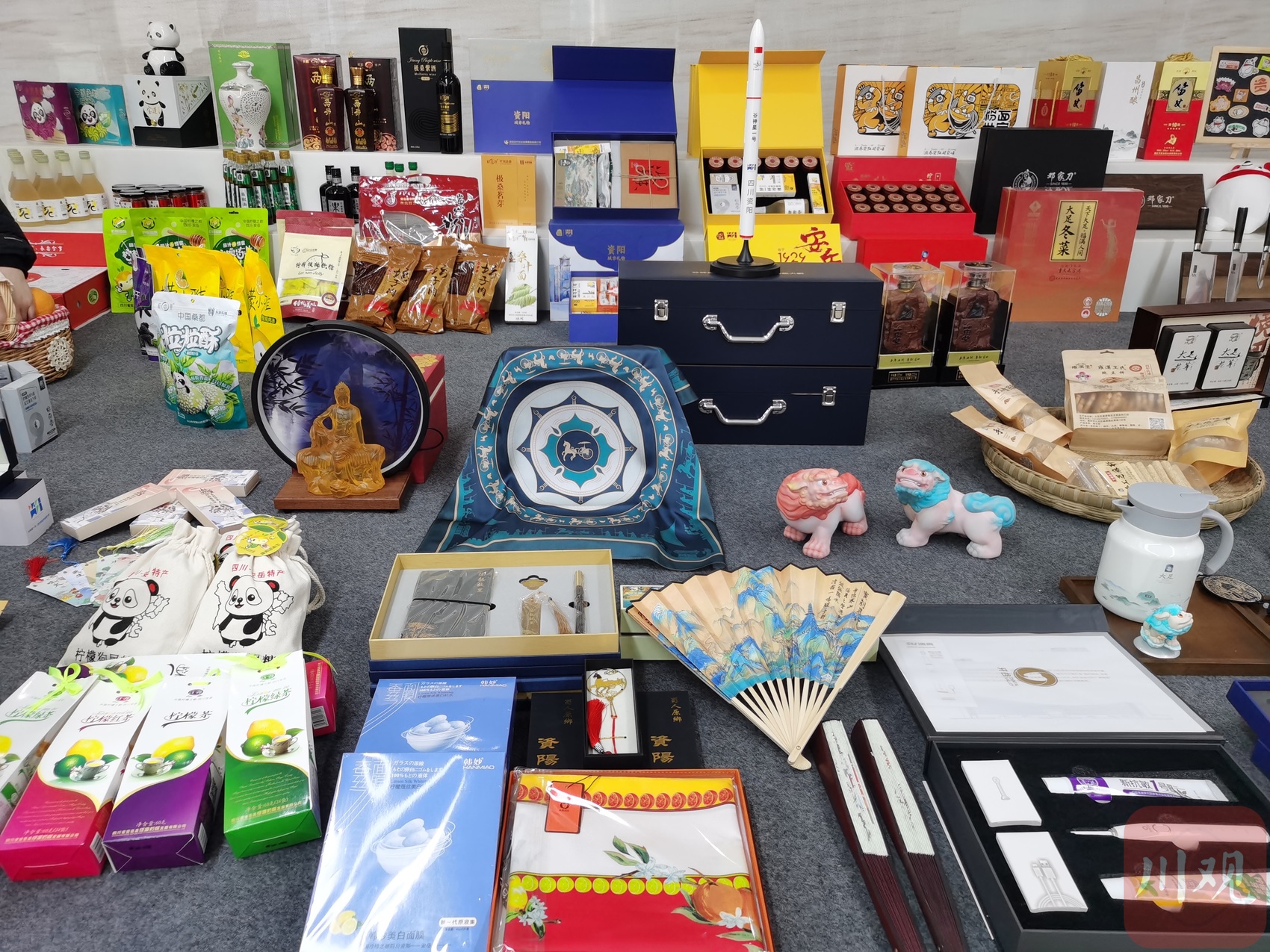 会场外,资阳大足美术百米长卷引人入胜,10个主题长卷集中展示两地石刻艺术、自然风光等地域特色文化;别具一格的“资足常乐”文创产品创意满满,依托两地丰富多彩的石窟(刻)艺术资源,围绕农业资源、工业资源及红色资源,设计开发出大足狮、石刻旅行家手办盲盒等文创产品……