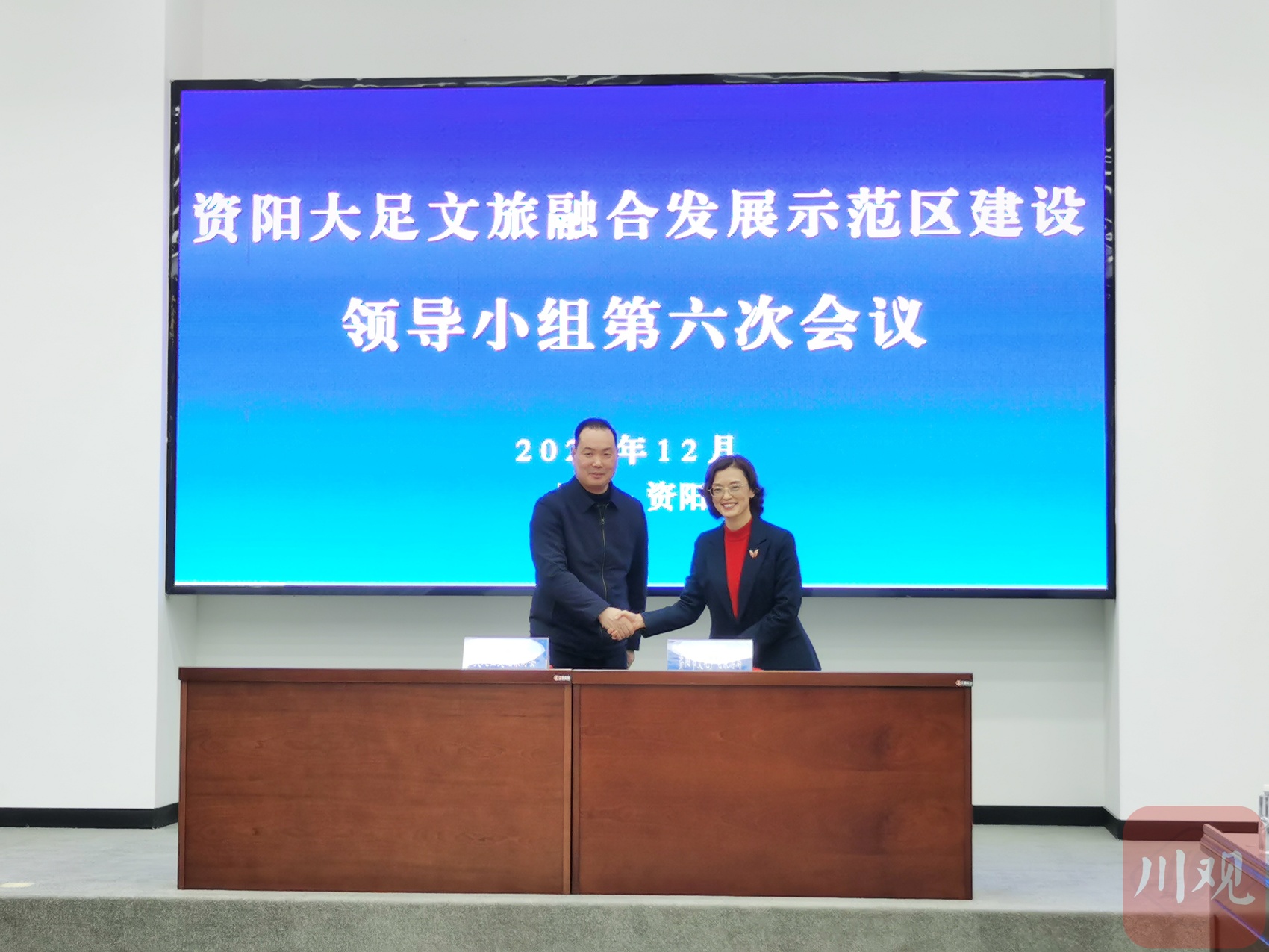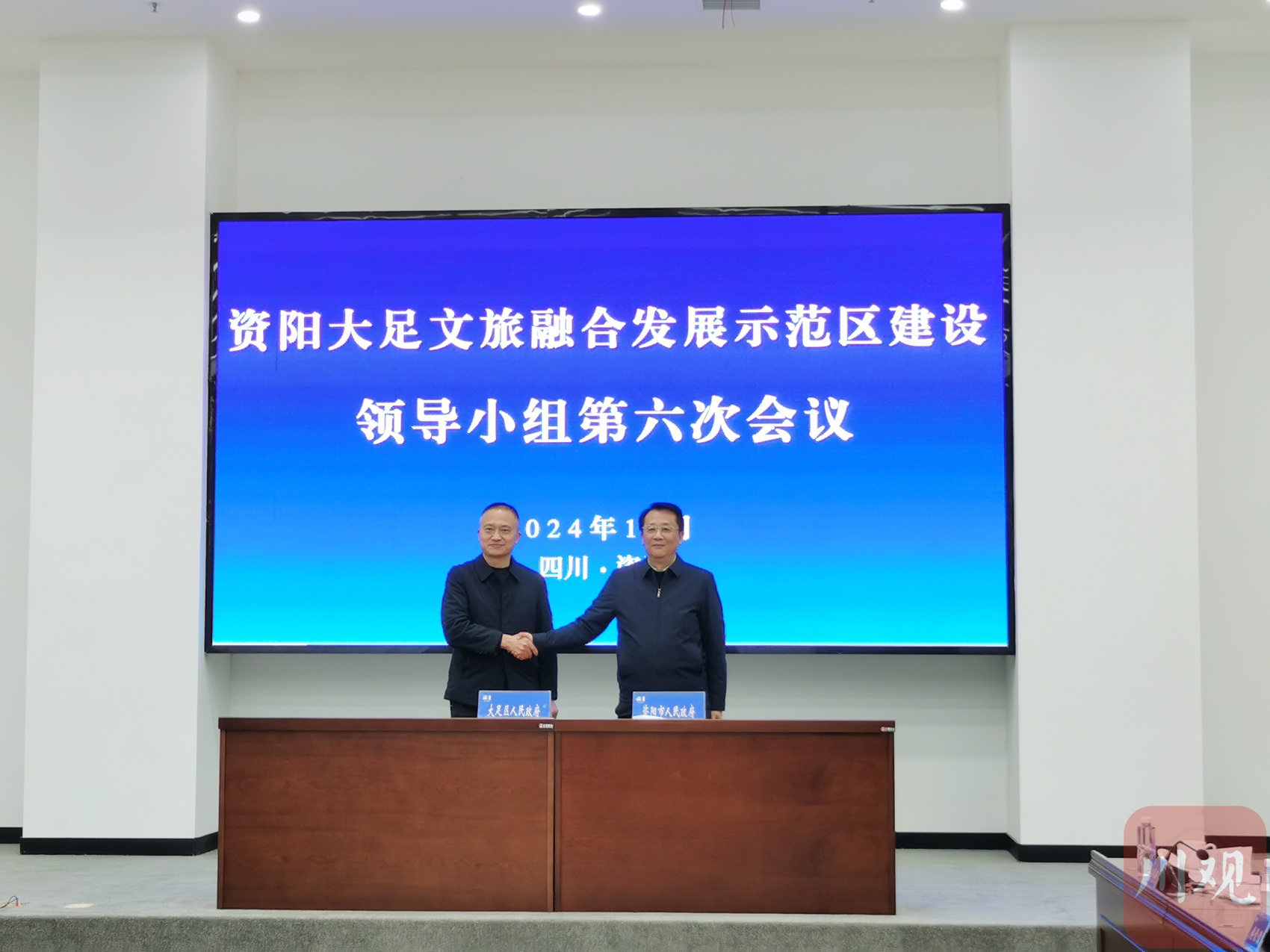 会场内,资阳大足两地的合作还在不断深化。两地联合创建国家文化产业和旅游产业融合发展示范区、两地文旅集团合作打造巴蜀雅楠生态旅游区、资阳大足石窟寺文物主题游径游客互送等一系列协议正式签订。