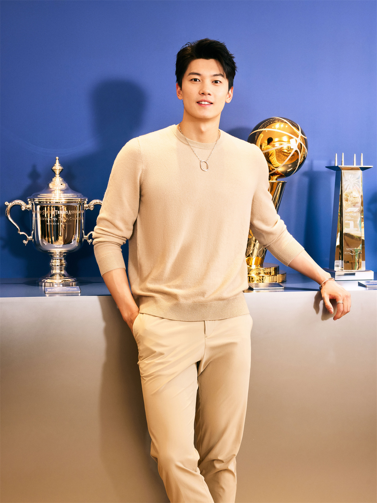 从左至右:NFL文斯·隆巴迪奖杯、美国网球公开赛女子单打冠军奖杯、上海国际马拉松赛冠军奖杯、NBA拉里·奥布莱恩奖杯、一级方程式迈阿密大奖赛奖杯、英雄联盟职业联赛银龙杯
