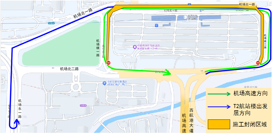 一、2024年12月21日8时至2024年12月29日24时,成都双流国际机场航站区高架T1段进行封闭施工,禁止车辆、行人通行。