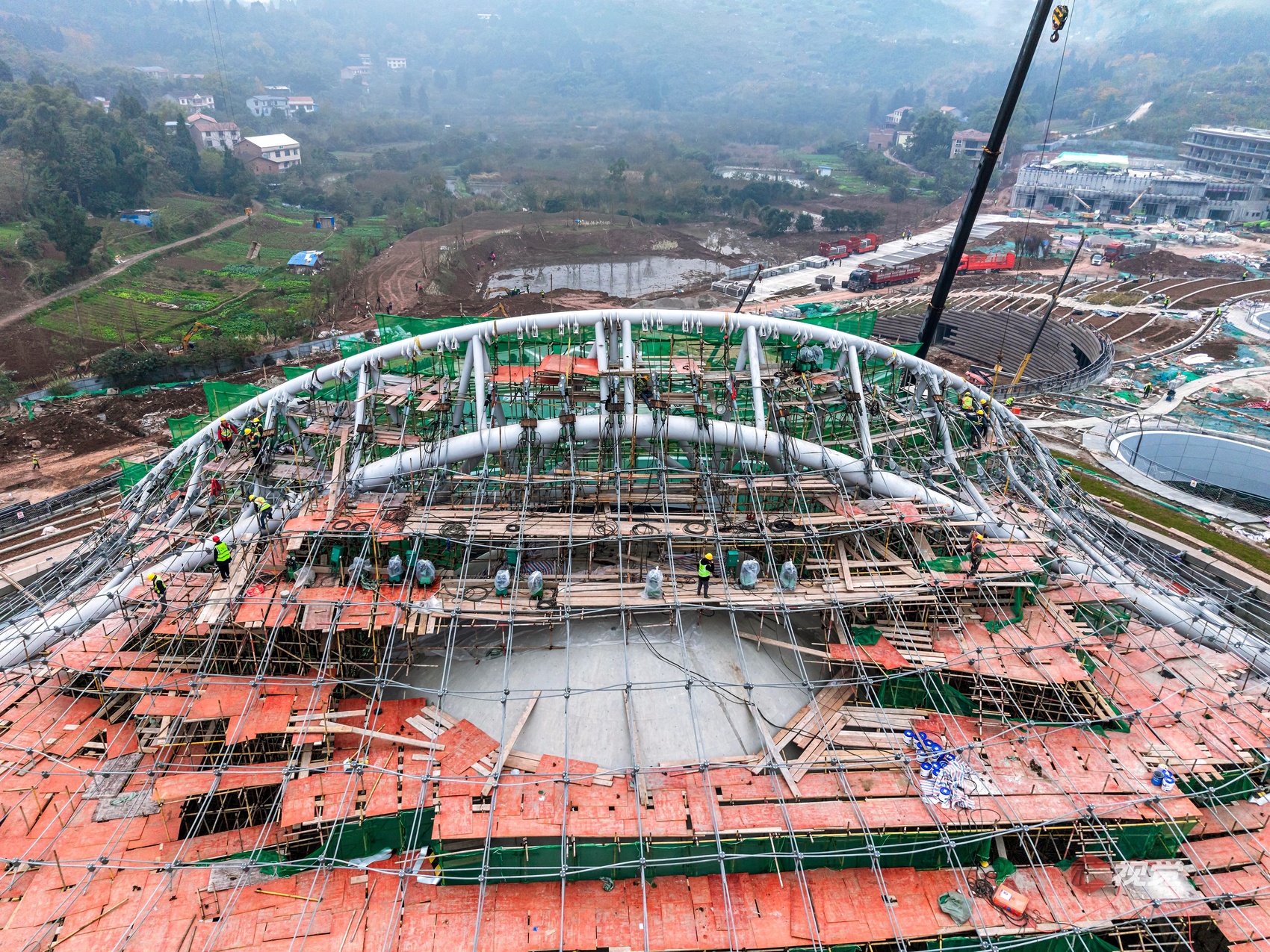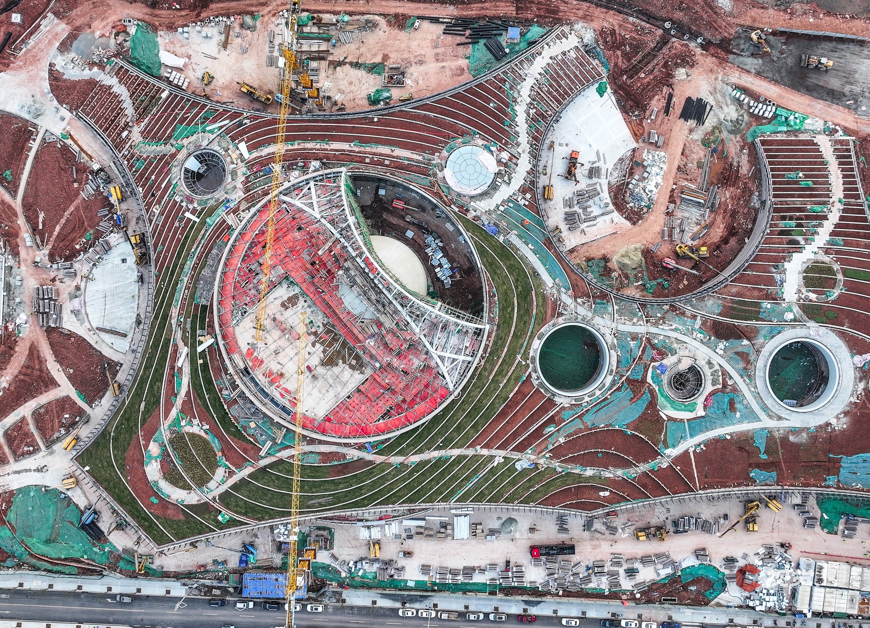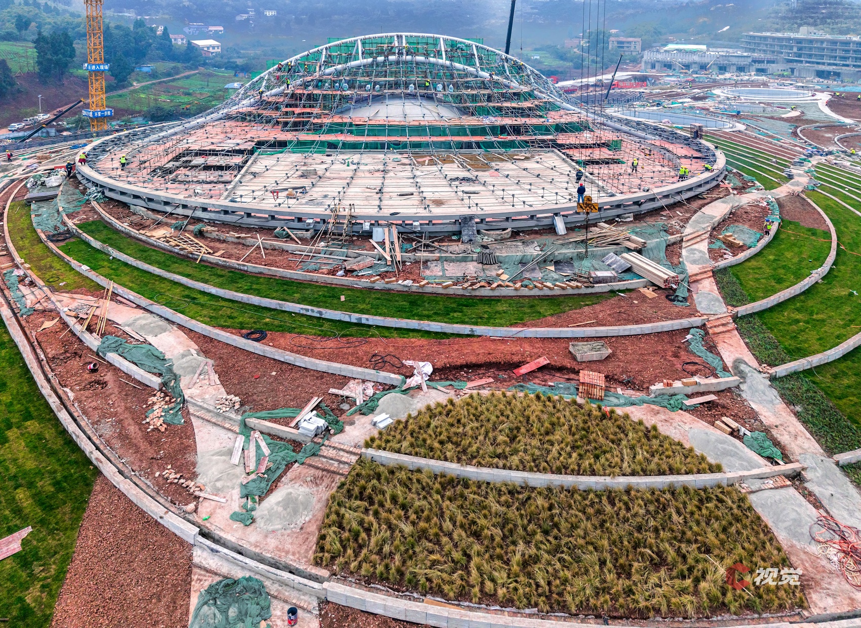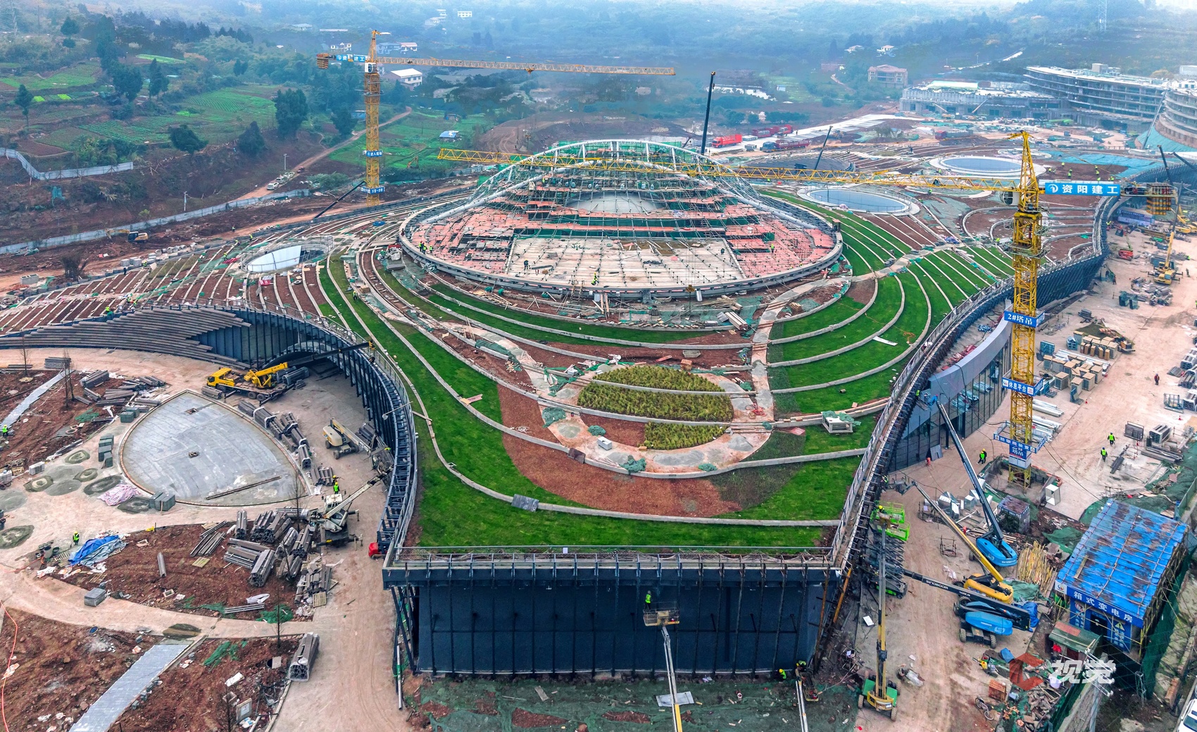 俯瞰正在建设中的资阳安岳石窟数字展示中心。