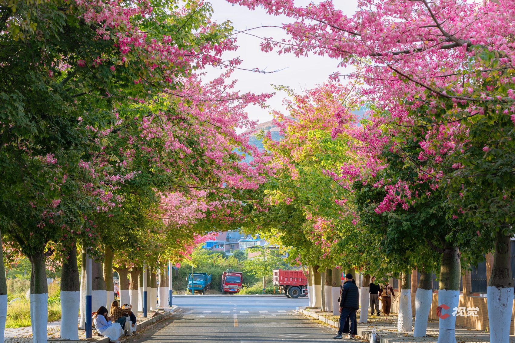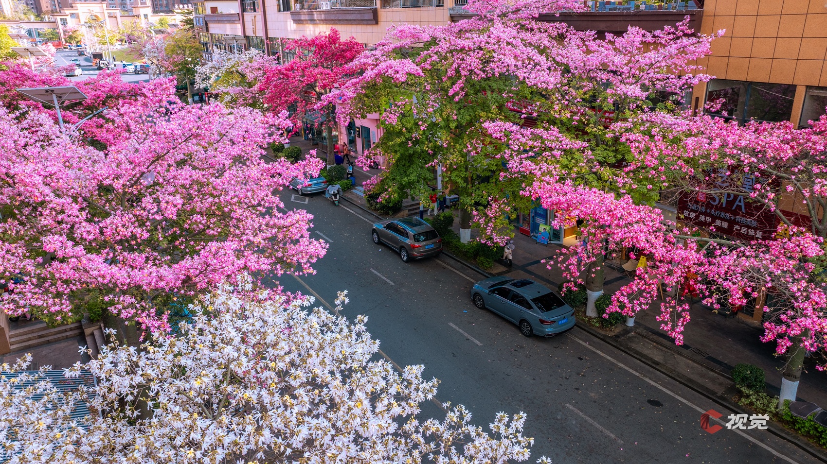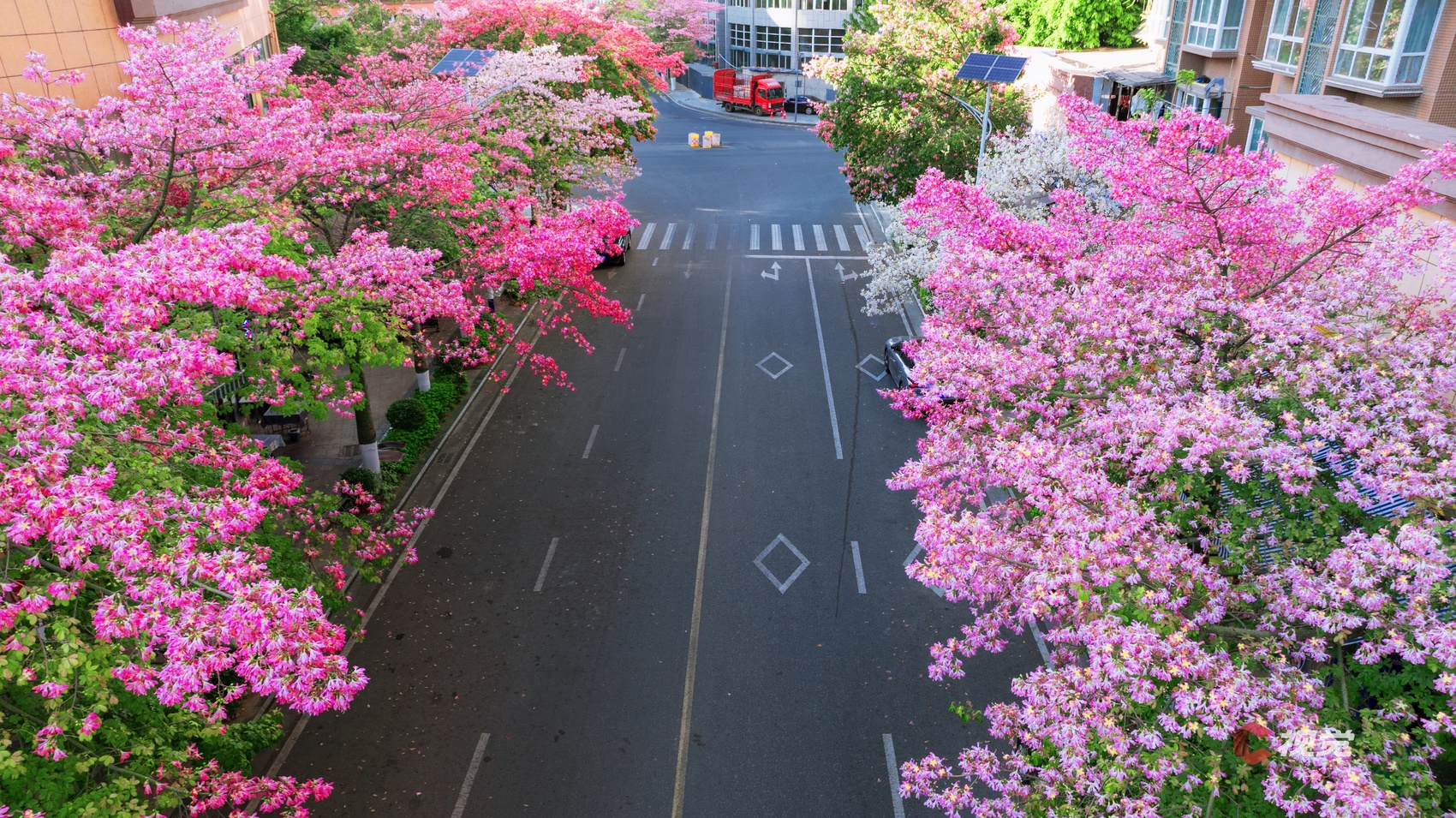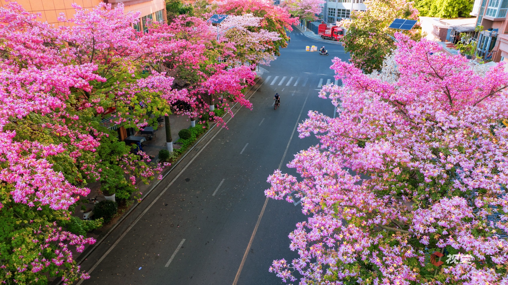 街头巷尾被粉色的异木棉点缀得如诗如画,美不胜收。