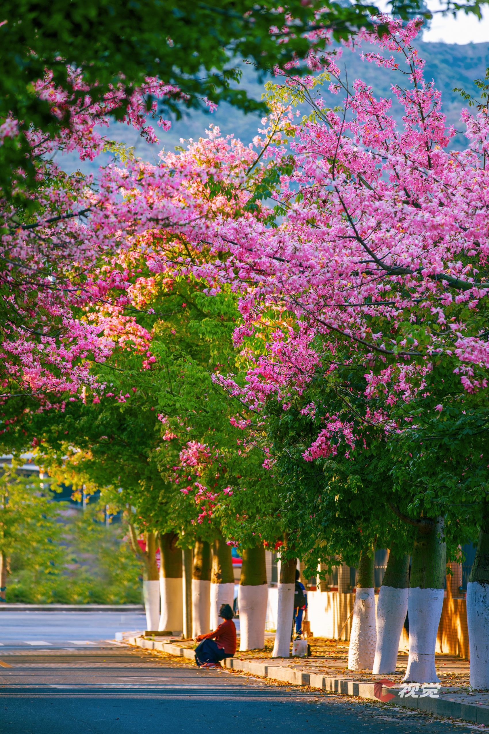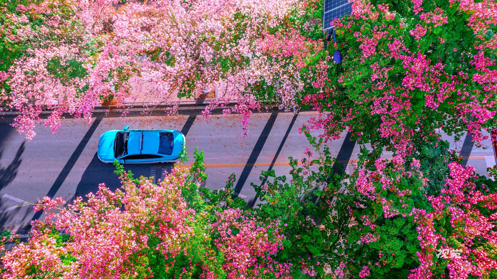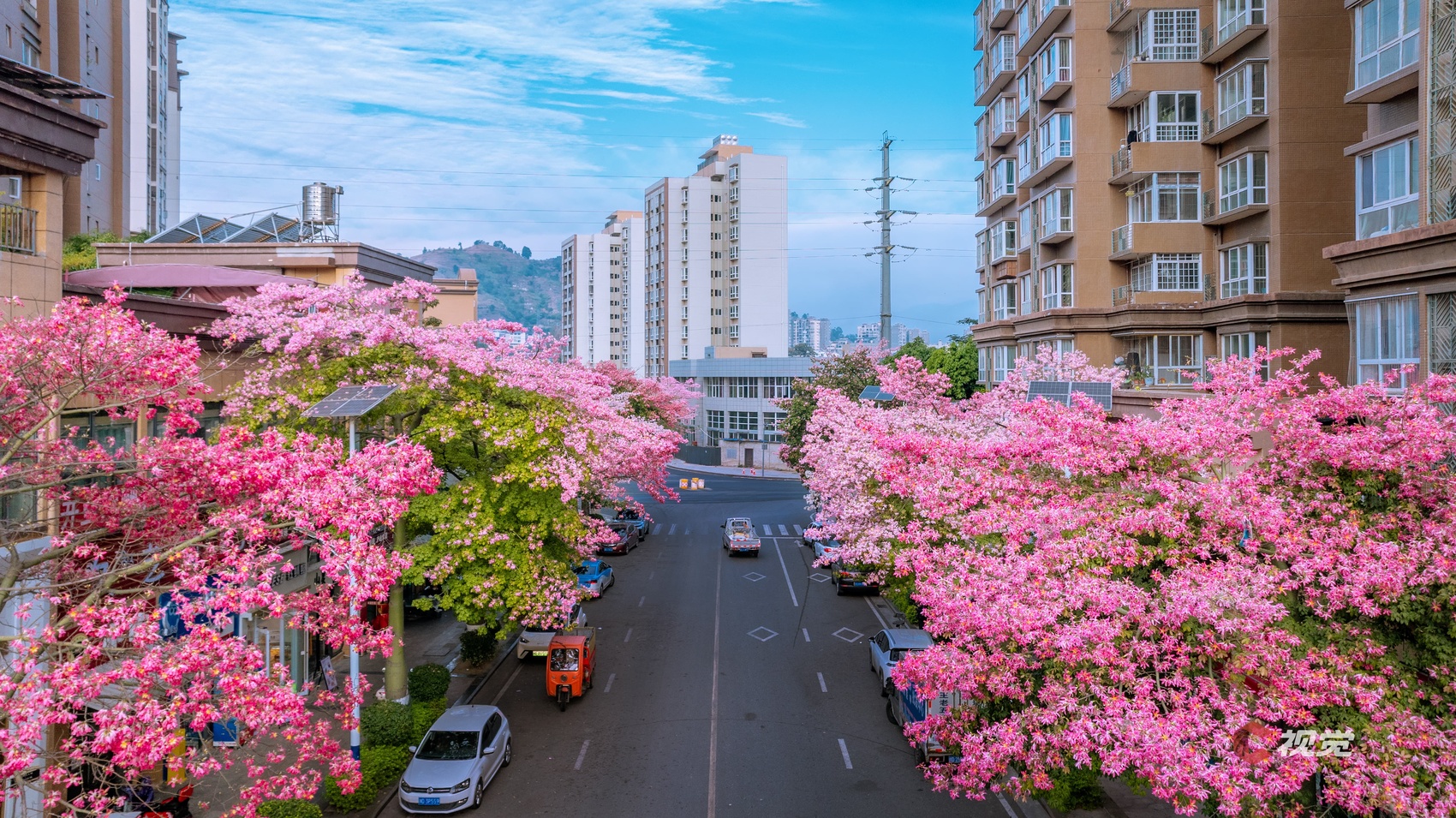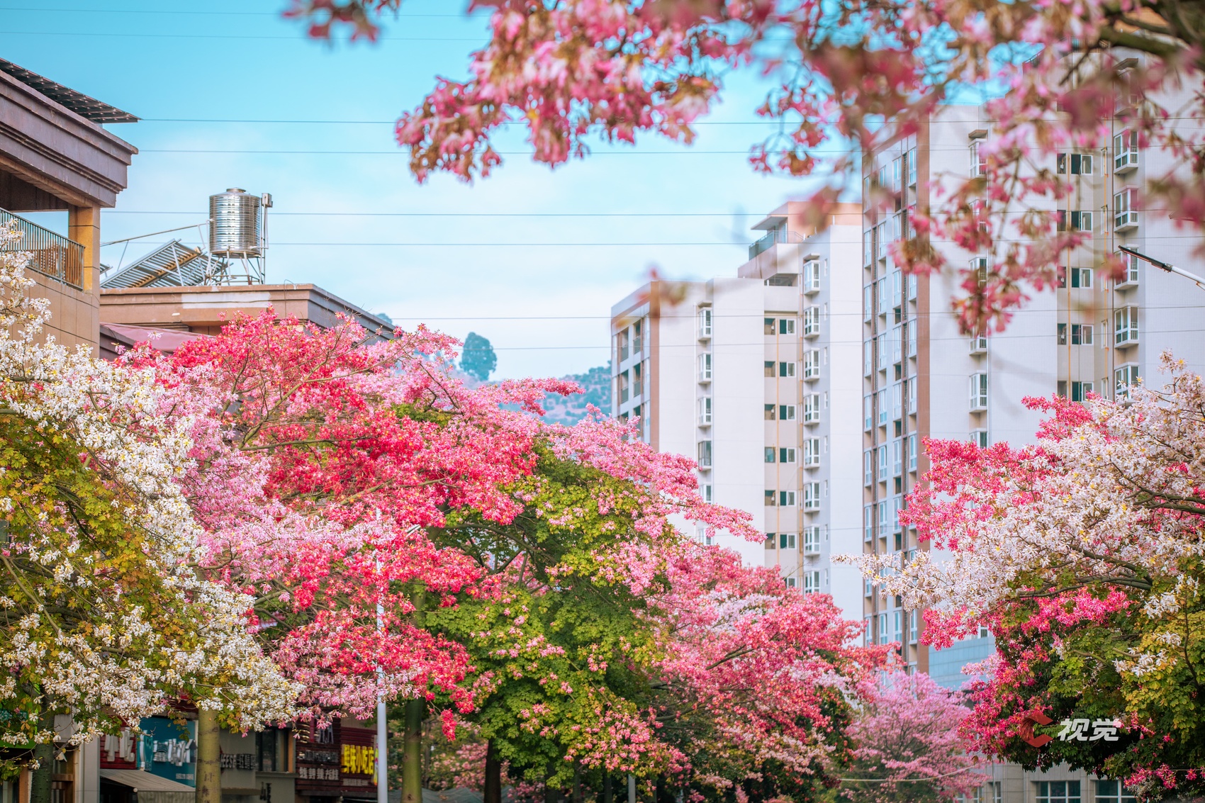 街头巷尾被粉色的异木棉点缀得如诗如画,美不胜收。