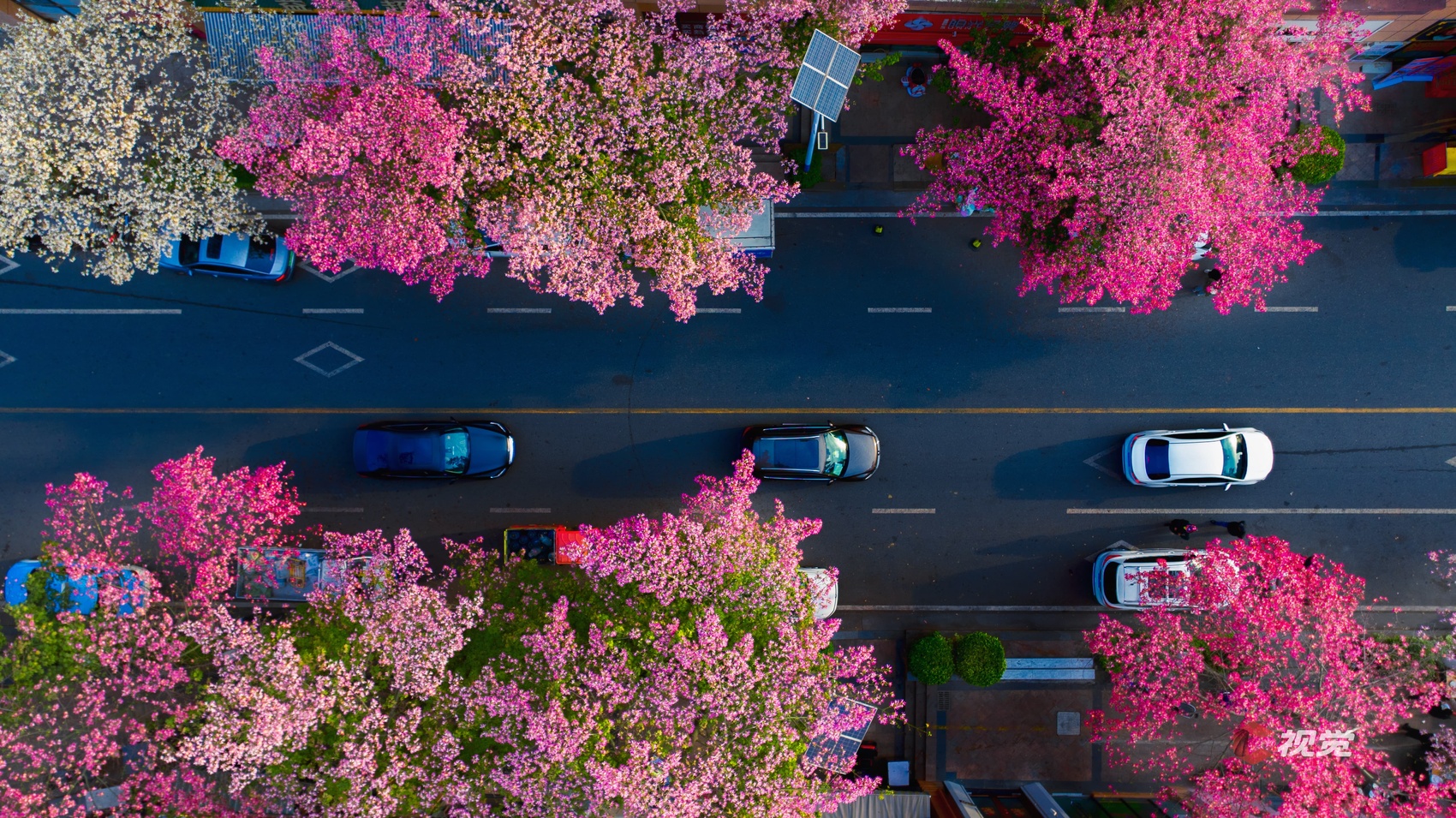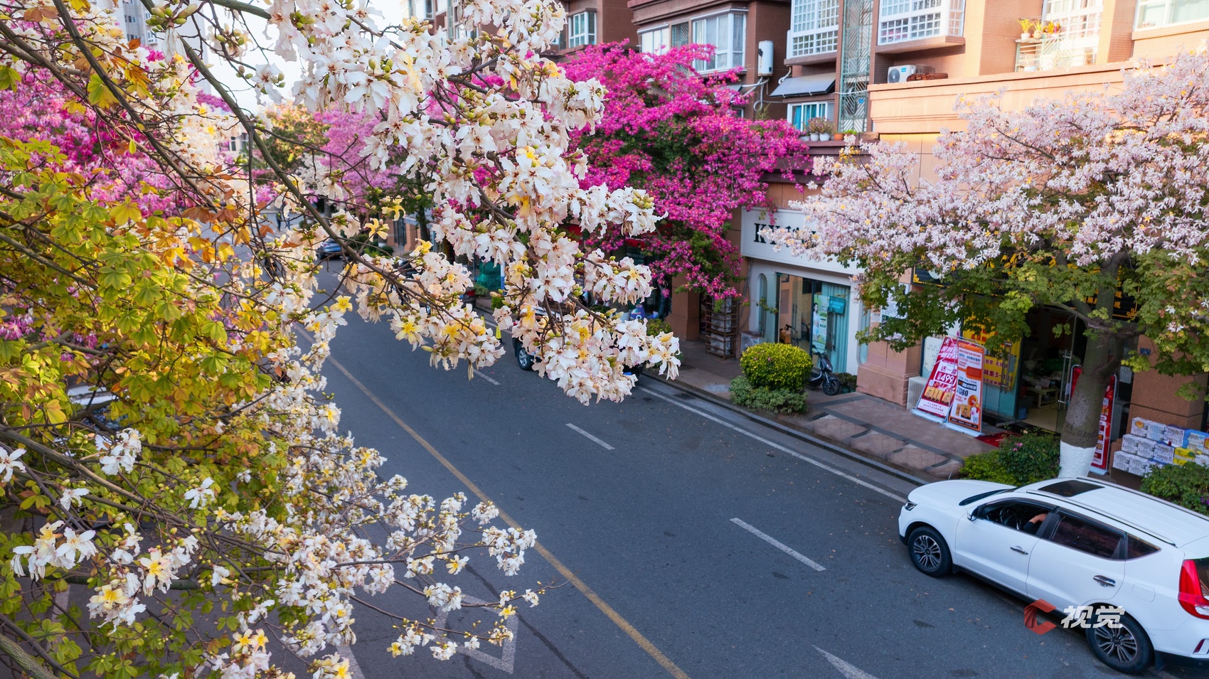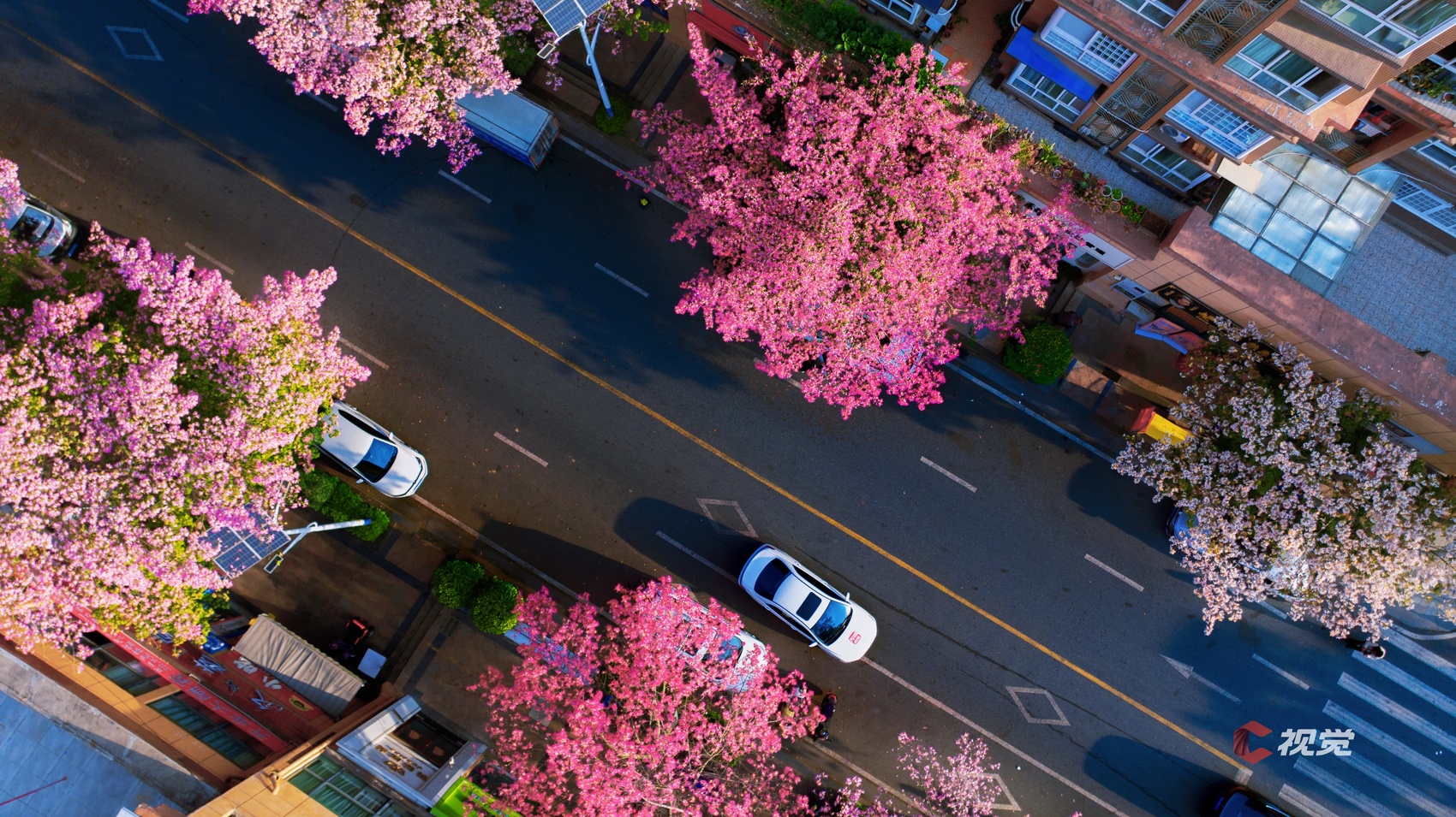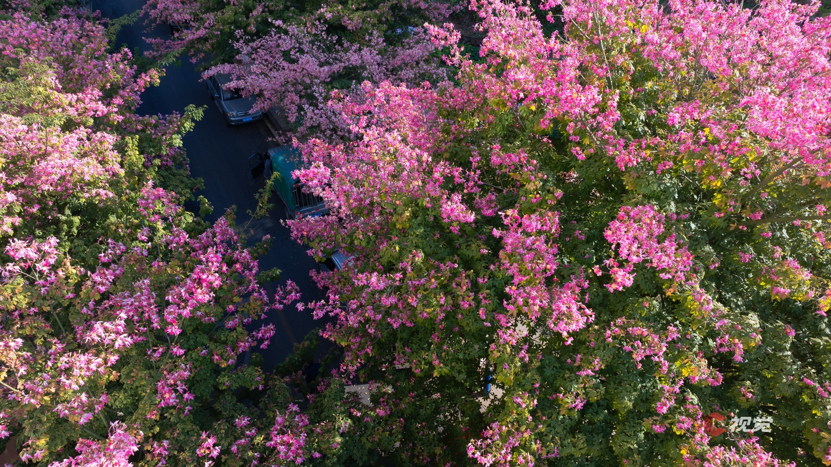 街头巷尾被粉色的异木棉点缀得如诗如画,美不胜收。