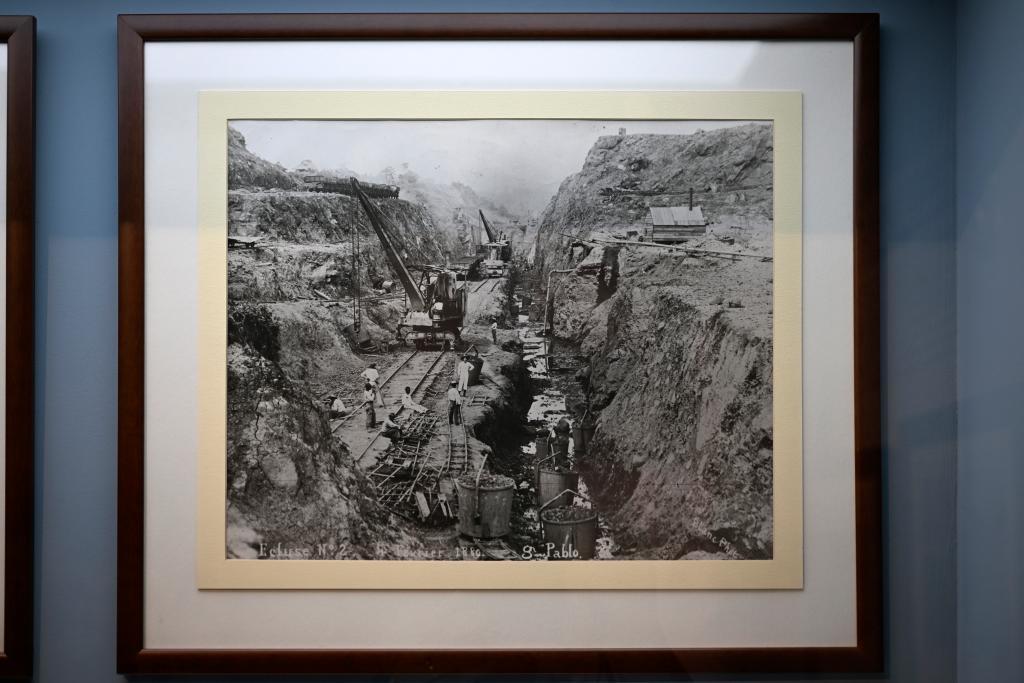 这是8月23日在巴拿马城巴拿马运河博物馆拍摄的一张建设巴拿马运河时的老照片。新华社记者李木子摄