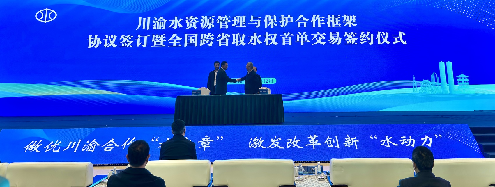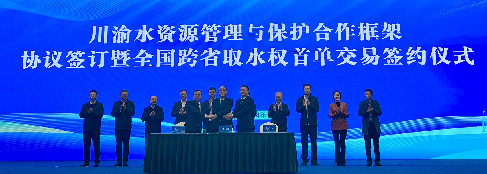12月24日,在川渝水资源管理与保护合作框架协议签订暨全国跨省取水权首单交易签约仪式上,达州市达川区益民水务有限公司、四川川煤华荣能源有限责任公司渡市选煤发电厂与重庆市梁平区梁禹供水有限公司进行取水权交易,共转让100万立方米,期限2年,单价每立方米0.15元,本场签约也是全国跨省取水权首单交易。