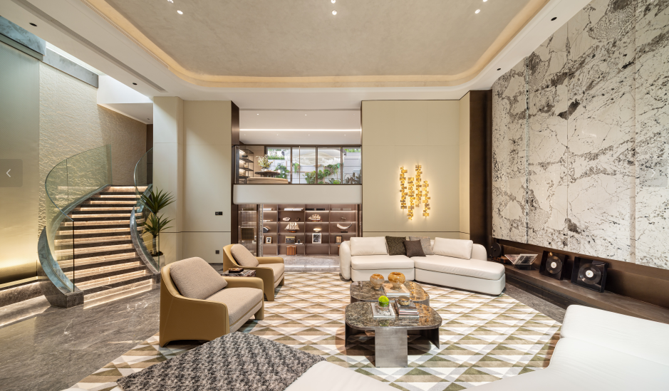 标准前庭后院的下叠鎏光院墅,一楼实现错落式连片花园,地下室也能实现阳光入户、抬头见景,二楼室室有景、朝南采光;三面环绕露台的中叠空中馆墅,为中间产品打造IMAX环幕系统,延伸出更大的阳台空间;甲板级观景的上叠星空叠墅,屋顶露台也达到了93平方米。