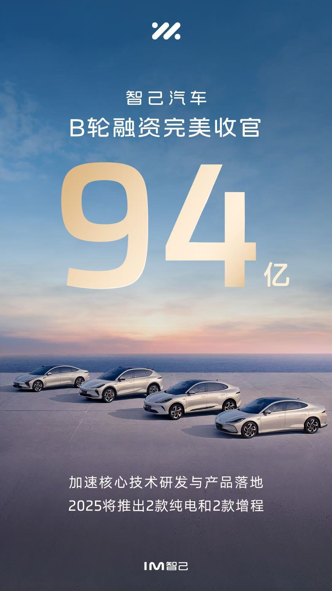 12月25日,智己汽车宣布顺利完成B1轮股权融资,整体B轮融资共募集资金94亿元。