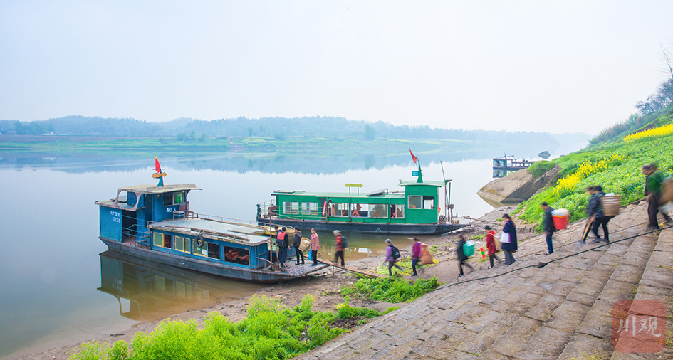 广安肖溪镇码头连接广安与渠县望溪镇。赶集日,望溪镇百姓乘船渡江,到肖溪赶集。
