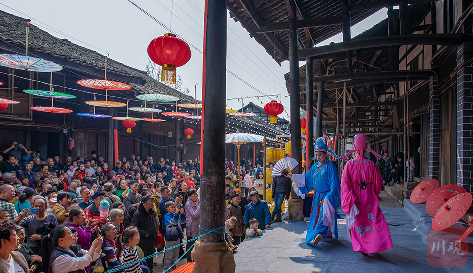 在肖溪古镇,每逢赶场日,戏声回荡。戏台上光影闪烁,演员们演绎着悲欢离合的故事,与古镇的青砖黛瓦共同构成一幅独特画面。