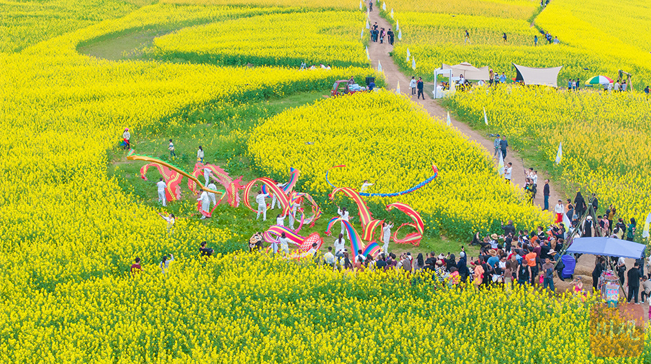 广安肖溪古镇油菜花节每年举办坝坝宴,为游客带来视觉和味觉享受。