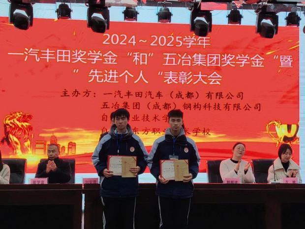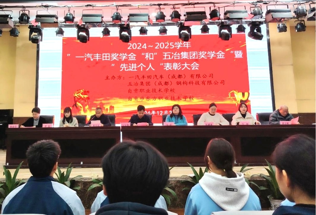 12月27日,2024-2025学年“一汽丰田奖学金”与“五冶集团奖学金”暨“先进个人”表彰大会,在自贡市东方职业技术学校和自贡职业技术学校举行。