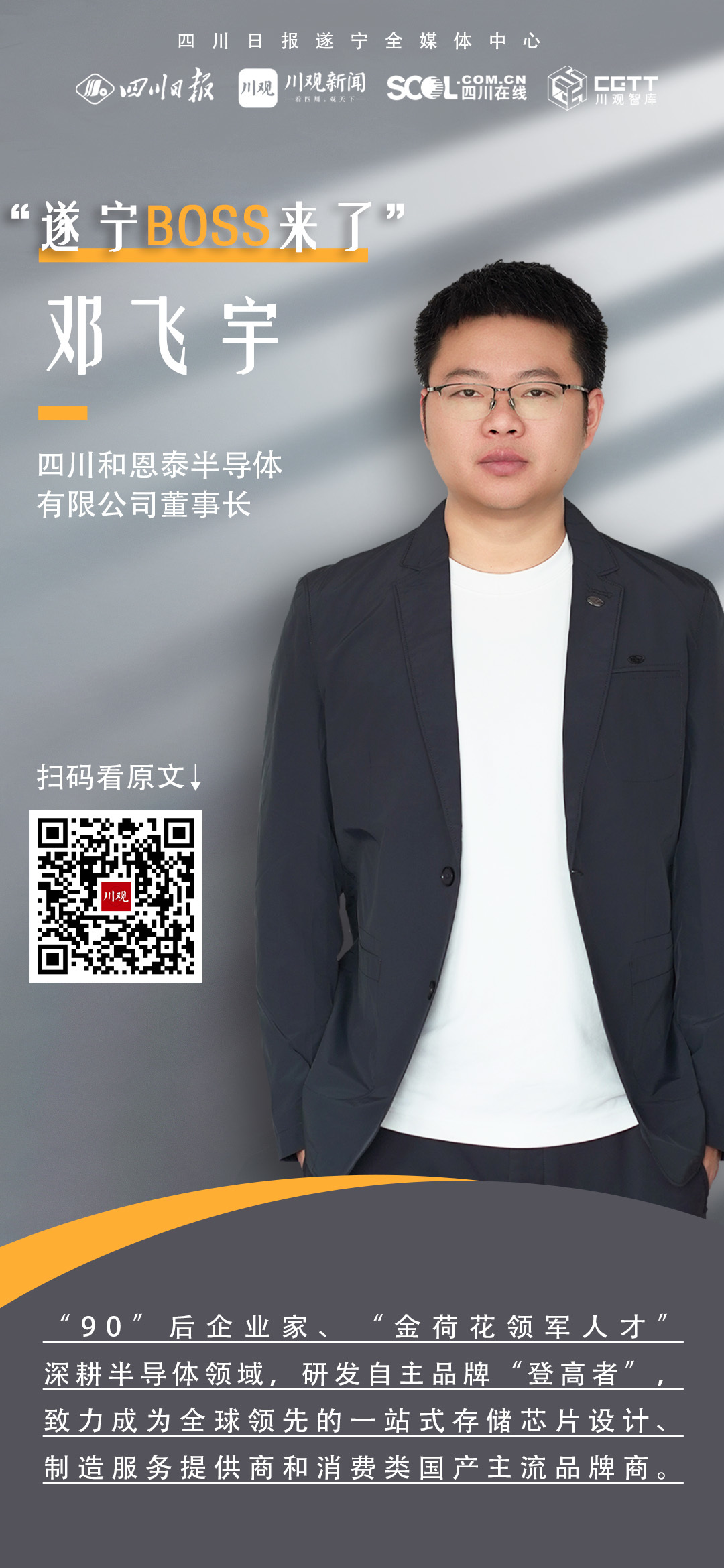 邓飞宇 :2010年,我在深圳从事通讯行业,那时开始接触电子信息产业,经过多年的沉淀后,于2019年正式进入存储芯片半导体行业。在我看来,当代高科技产业中,半导体行业被誉为引领科技创新的核心力量,发挥着重要的作用,有着很好的发展前景,2021年3月,四川和恩泰半导体有限公司成立,正式开启了创业之路。