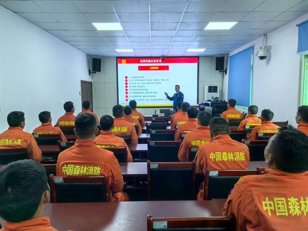 “林火的燃烧时间长短与森林资源的损失和扑救难度成正比,森林燃烧时间越长,扑救难度也就越大。因此,能够快速到达火场、接近火线,抓住一切有利战机实施有效灭火就成为扑救林火的关键,而实施地空协同灭火作战恰恰可以解决力量投送的速度问题。”道孚县森林消防大队大队长杨建川在理论授课中讲解了地空协同作战的优势及特点。